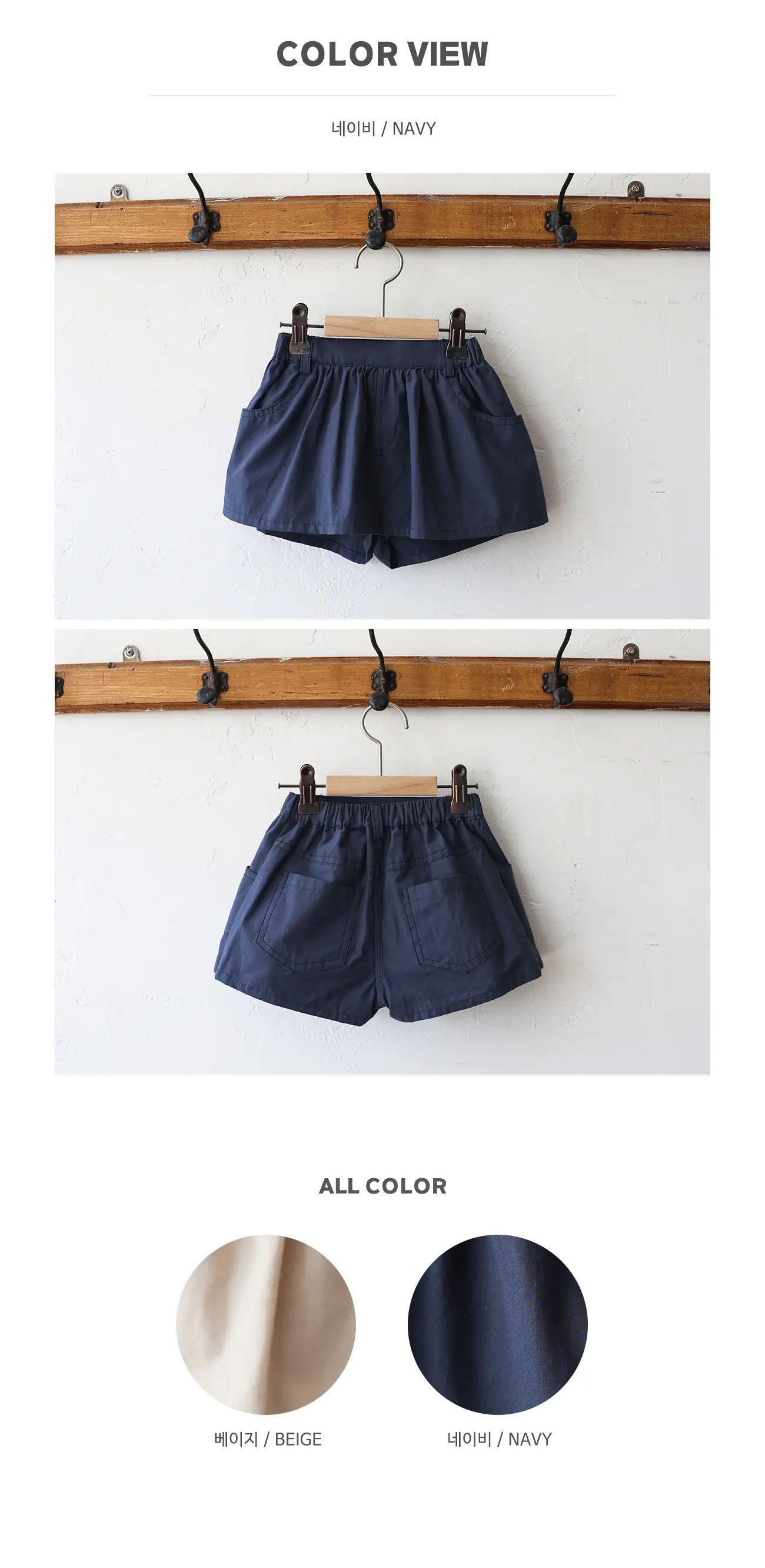 韓國 PuellaFLO - 後鬆緊極簡風口袋褲裙-海軍藍