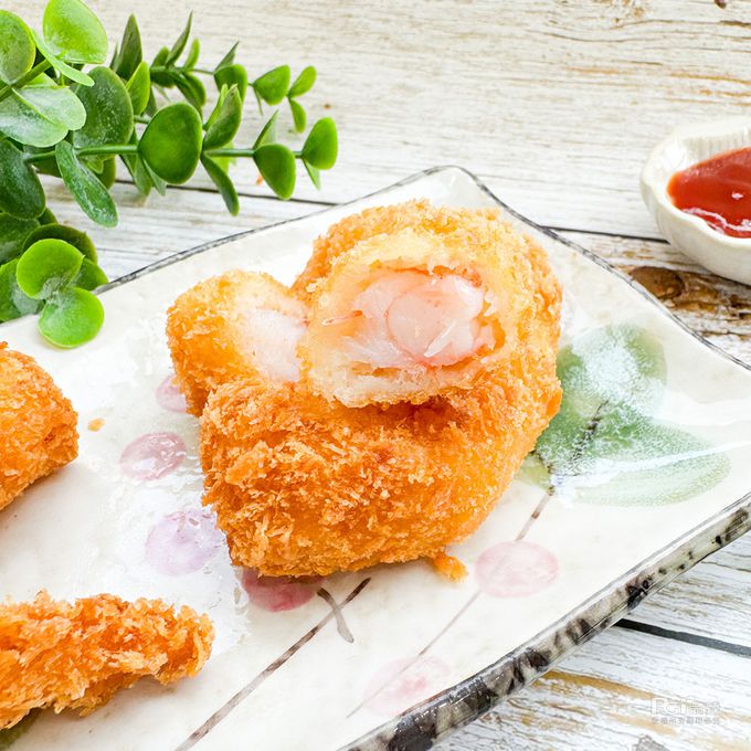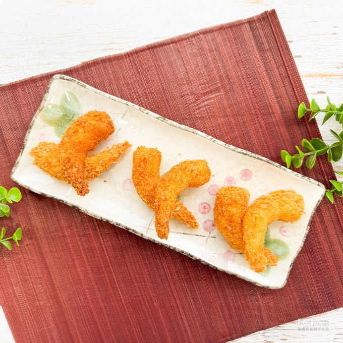 成分:蝦[白蝦、混合劑(碳酸氫鈉、氯化鈉、檸檬酸)、其他成分(氯化鈉、糊精)、食鹽]、麵包粉[小麥粉、酵母、食鹽、改良劑(玉米澱粉、碳酸鈣、硫酸鈣、抗氧化劑<維生素C>、澱粉酵素)]、混合麵糊[小麥粉、玉米澱粉、醋酸澱粉、食鹽、雞蛋粉、奶粉、複方膨脹劑(碳酸氫鈉、酸性焦磷酸鈉、磷酸二氫鈣)、調味劑(L-麩酸鈉、5'-次黃嘌呤核苷磷酸二鈉、5'-鳥嘌呤核苷磷酸二鈉)、粘稠劑(關華豆膠、玉米糖膠)、水]、混合劑[醋酸澱粉、玉米澱粉、米粉、雞蛋粉、食鹽]