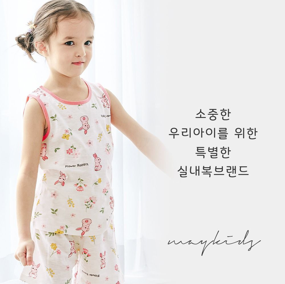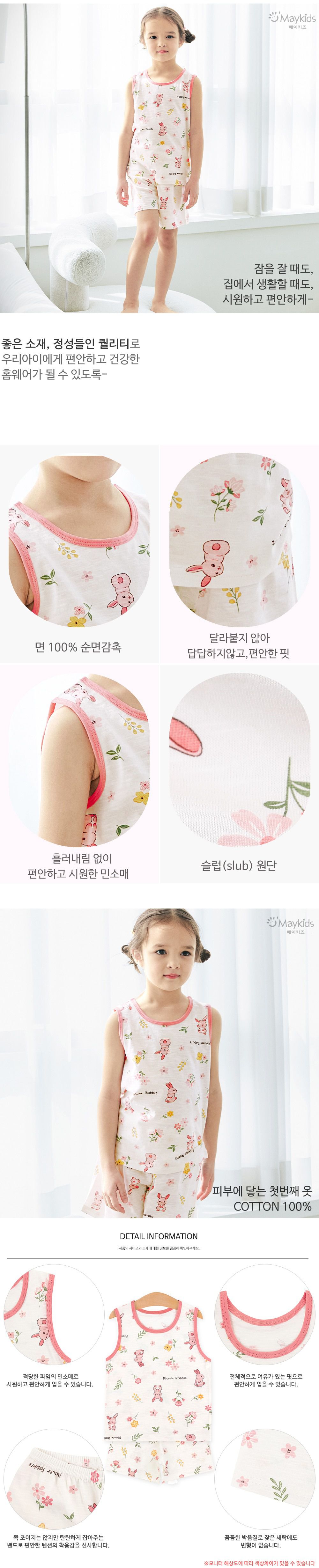 韓國 Maykids - 輕薄細柔棉無袖家居服-粉兔花圃