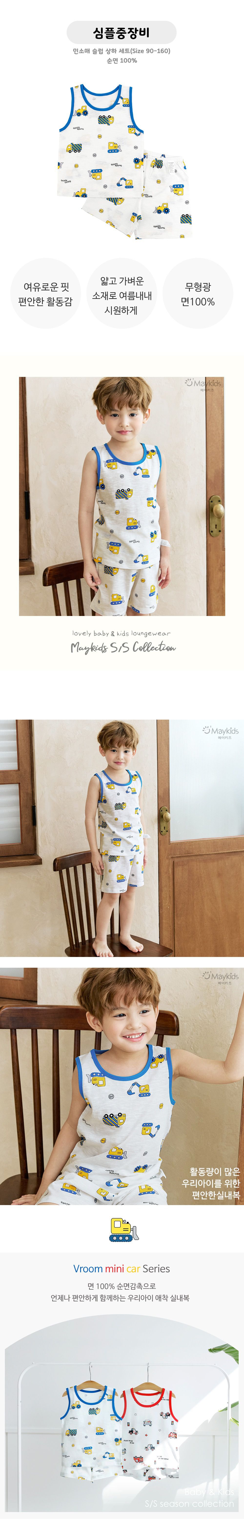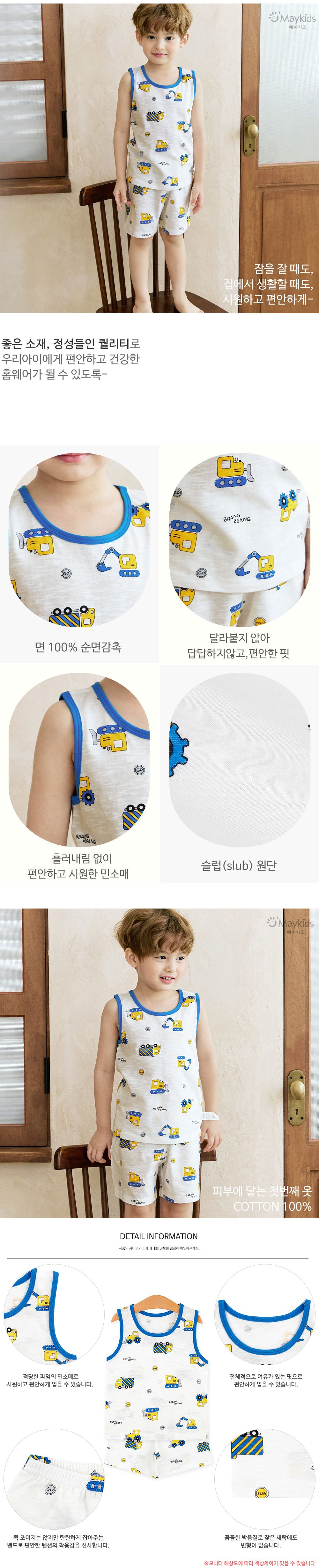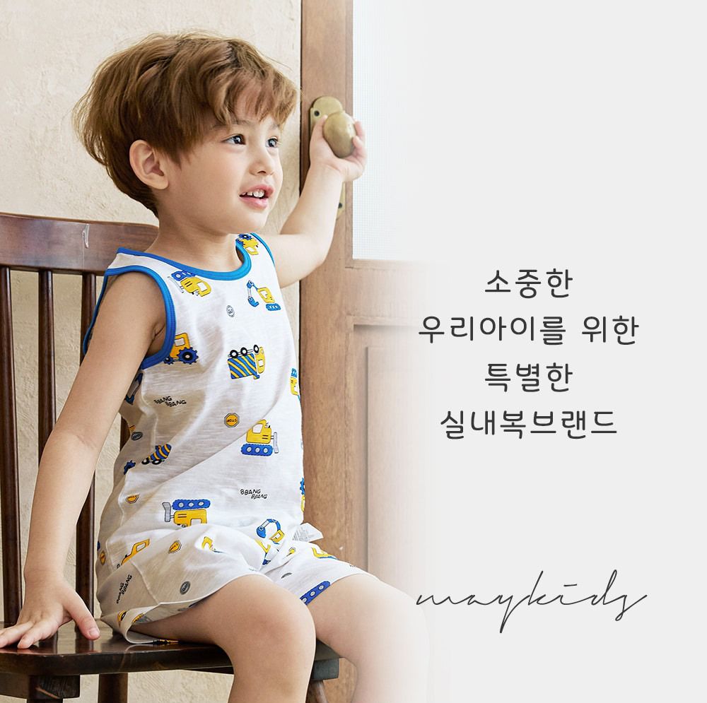 韓國 Maykids - 輕薄細柔棉無袖家居服-工程車叭叭