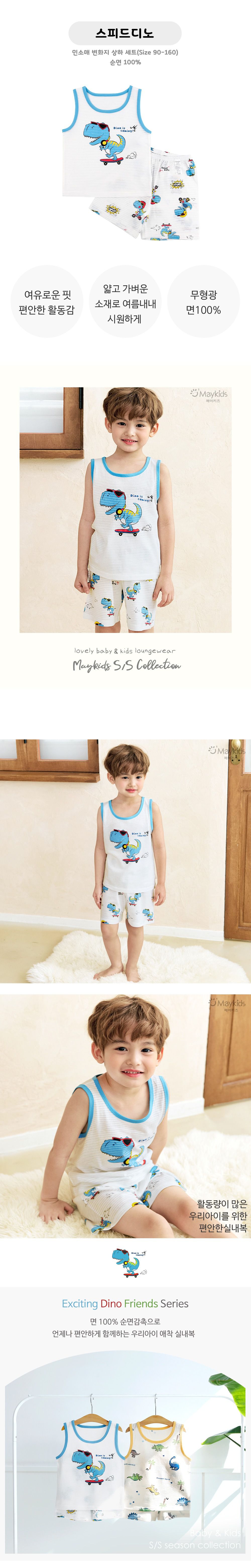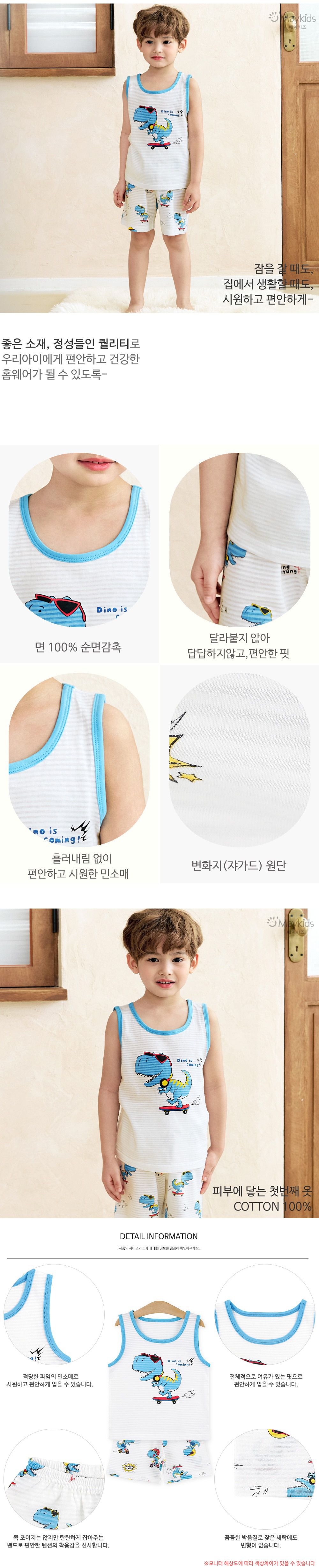 韓國 Maykids - 透氣條紋提花棉無袖家居服-滑板暴龍