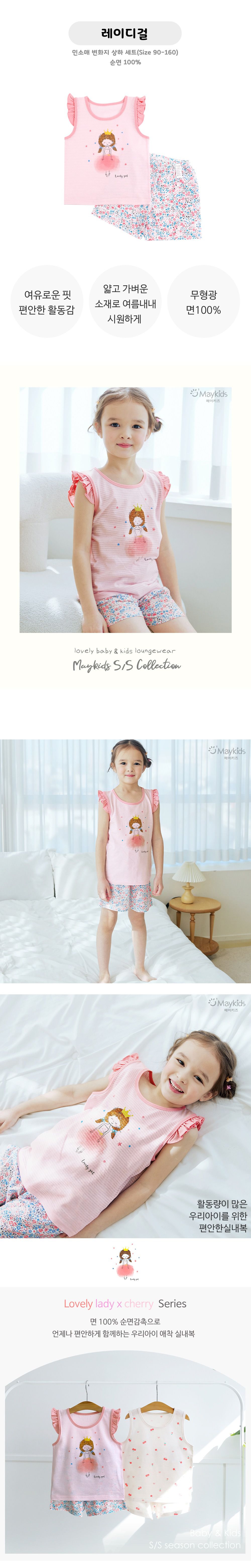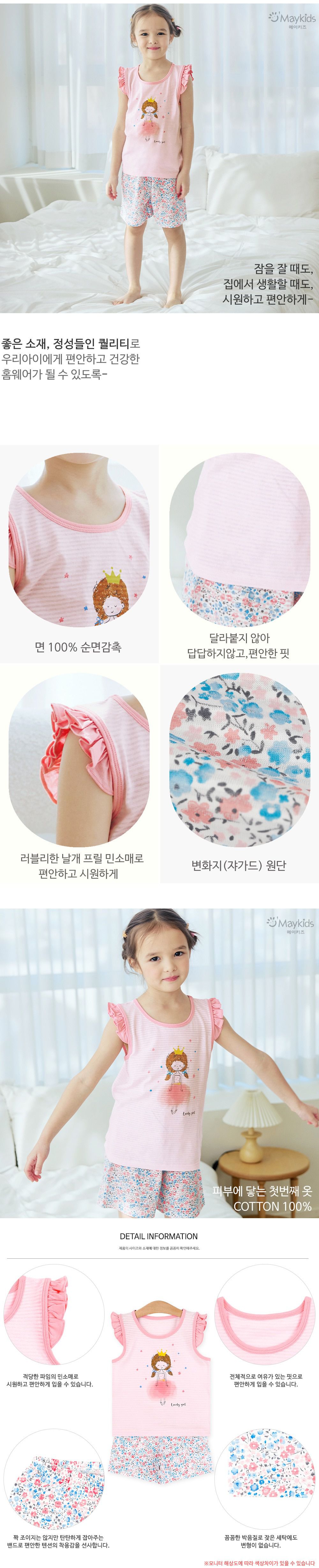 韓國 Maykids - 透氣條紋提花棉無袖家居服-星星糖公主-粉