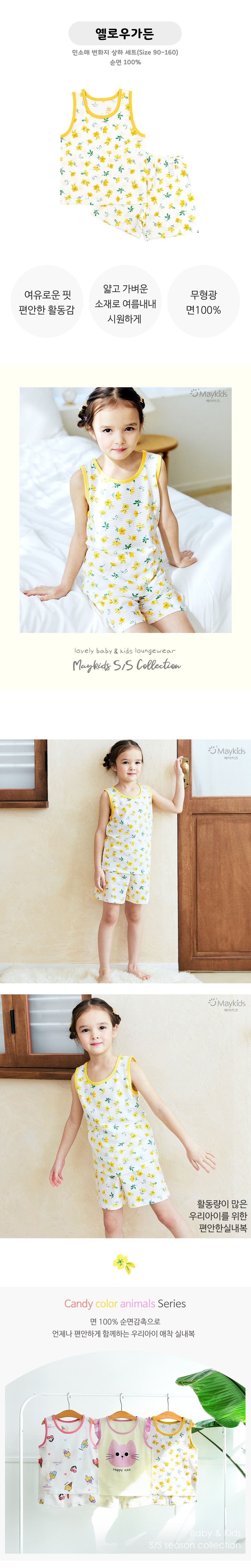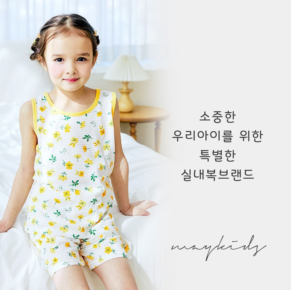韓國 Maykids - 透氣條紋提花棉無袖家居服-澄黃花園