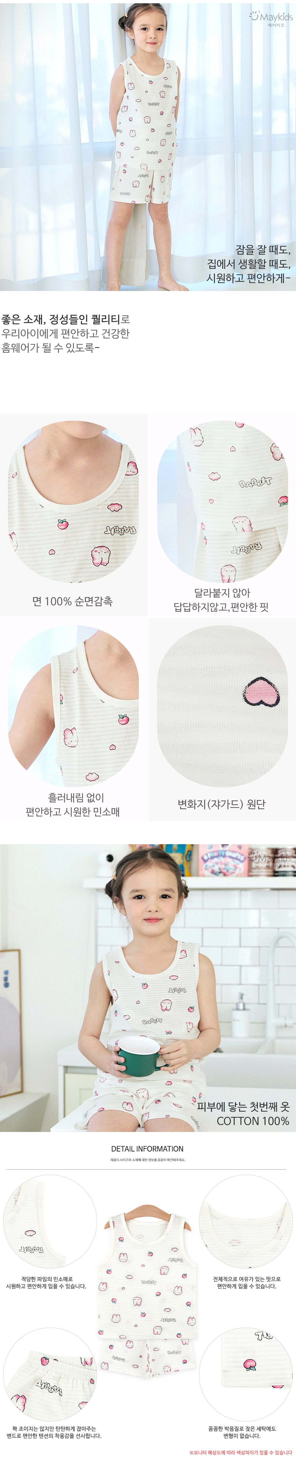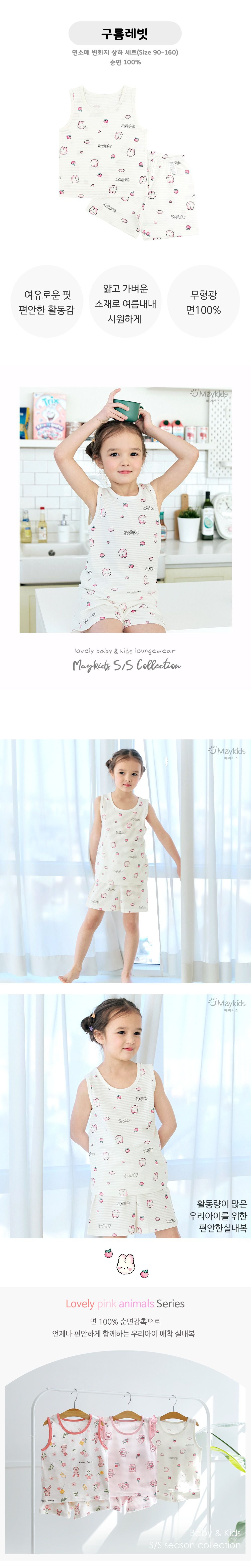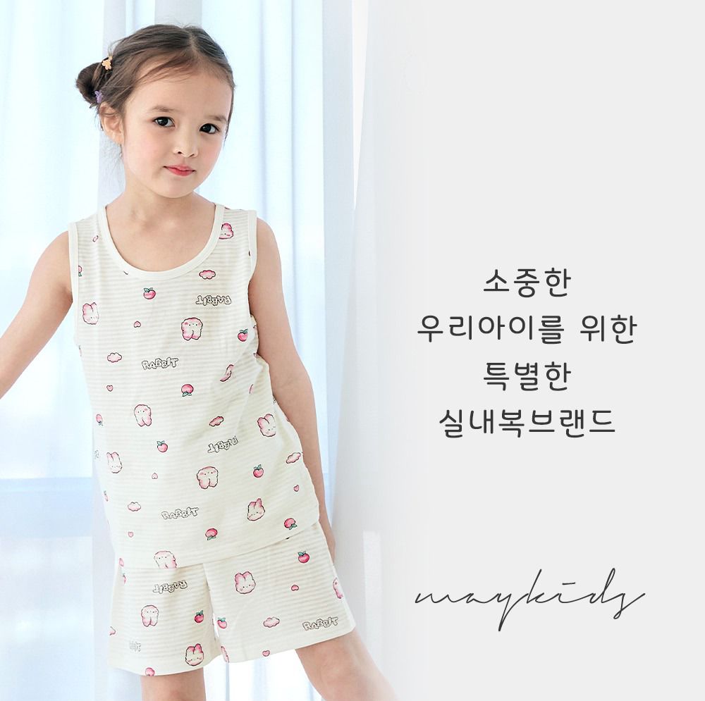 韓國 Maykids - 透氣條紋提花棉無袖家居服-雲朵兔兔