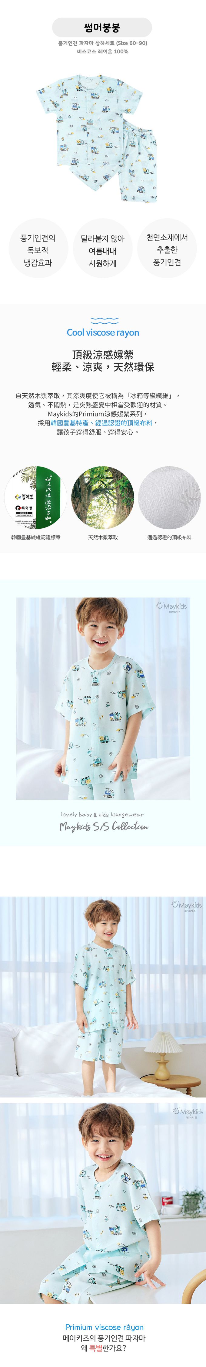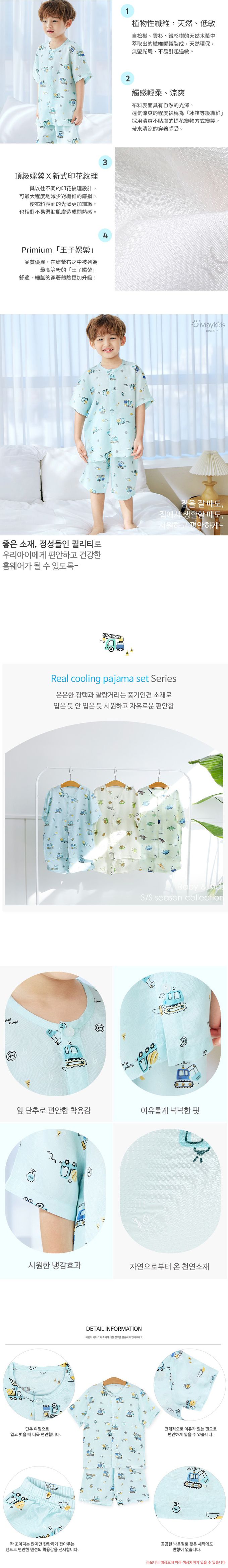 韓國 Maykids - [Primium]涼感嫘縈透氣短袖睡衣套裝-迷你工程車-天藍