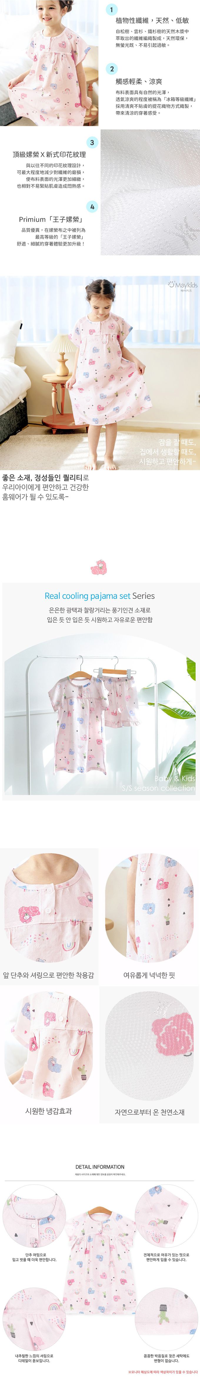 韓國 Maykids - [Primium]涼感嫘縈透氣短袖連身睡裙-彩虹羊駝-淡粉