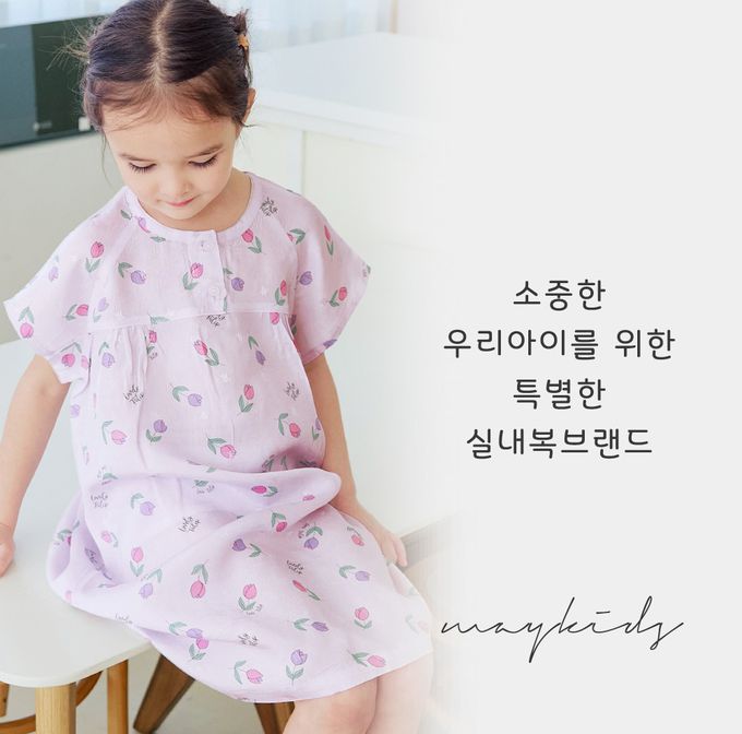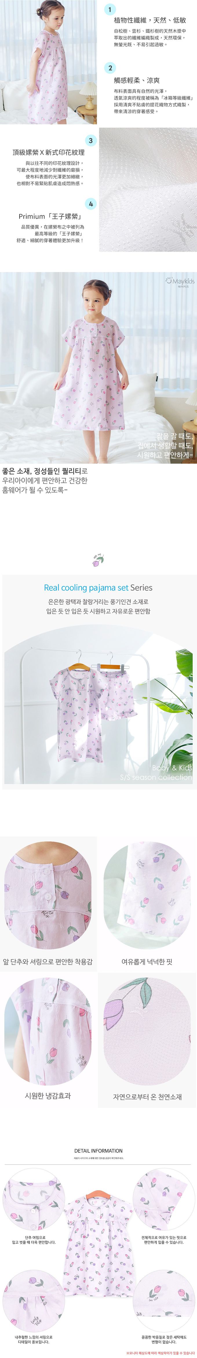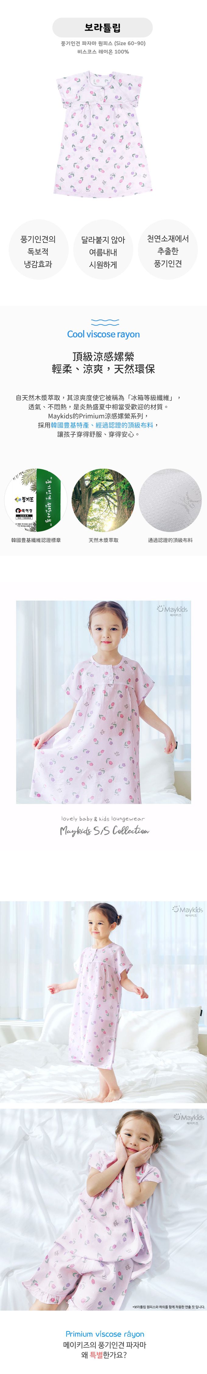 韓國 Maykids - [Primium]涼感嫘縈透氣短袖連身睡裙-鬱金香-淡紫