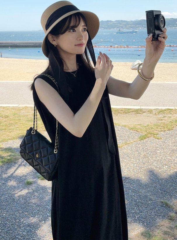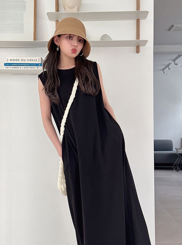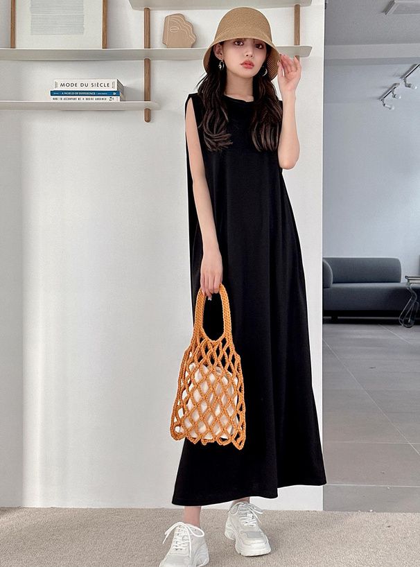 日本 GRL - 休閒感棉混透氣無袖洋裝-黑 (F)