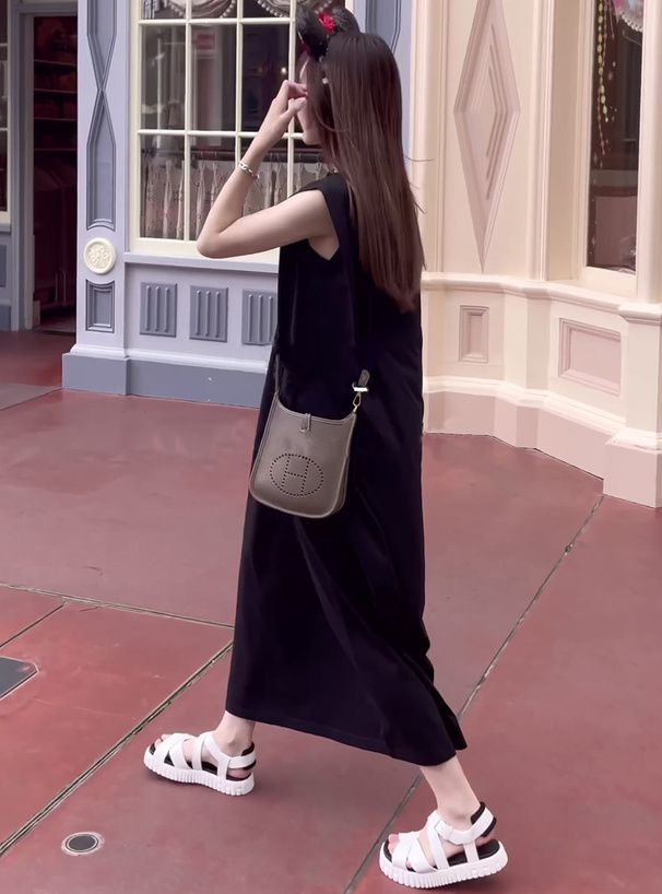 我是160公分52公斤,這件棉無袖洋裝穿起來有點大件,不是像模特兒照片那樣合身,但穿起來衣服會有下垂感,同事都誇好看