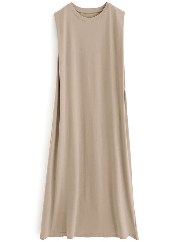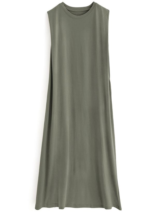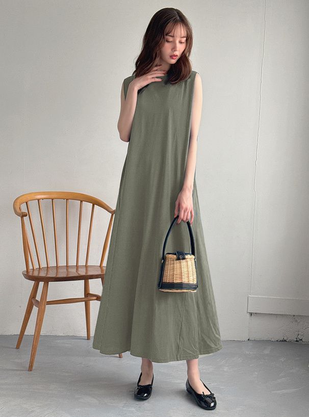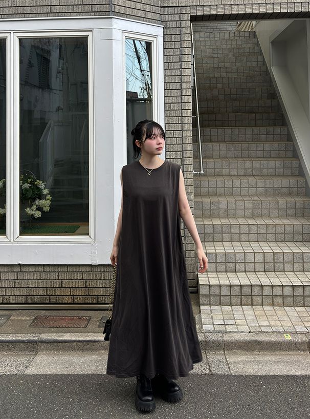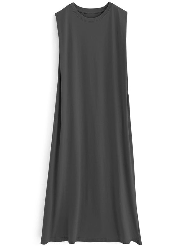 日本 GRL - 休閒感棉混透氣無袖洋裝-炭灰 (F)