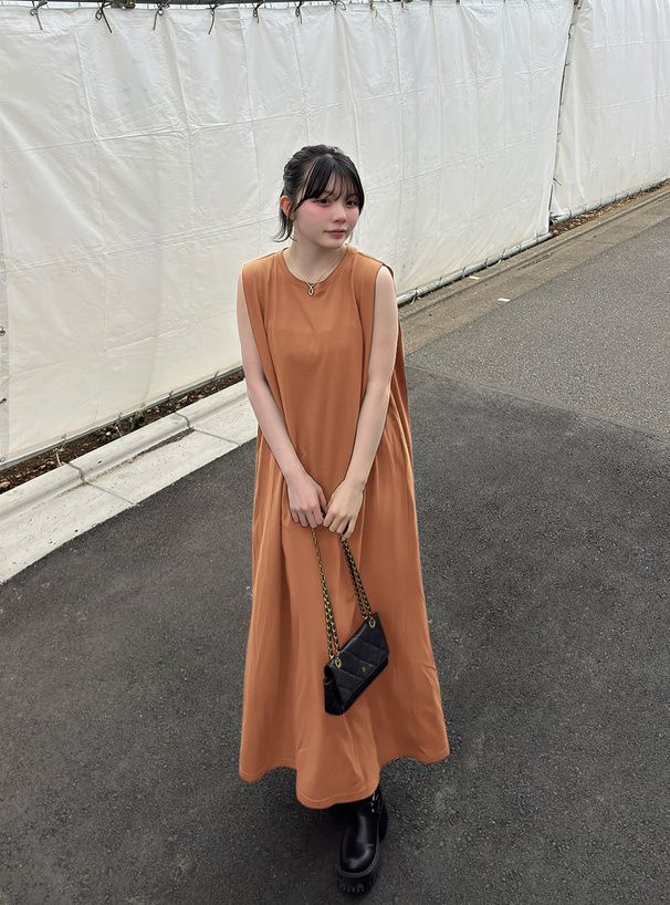 日本 GRL - 休閒感棉混透氣無袖洋裝-暖橘 (F)