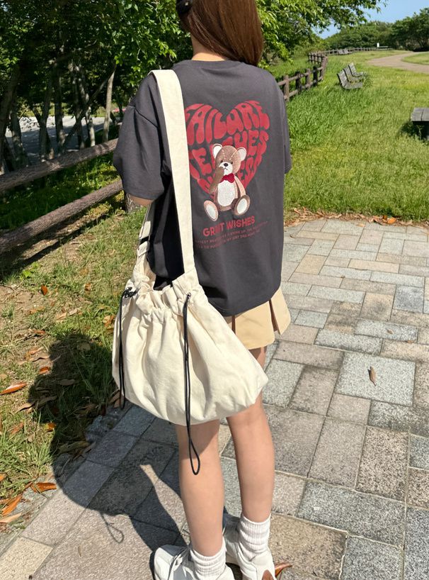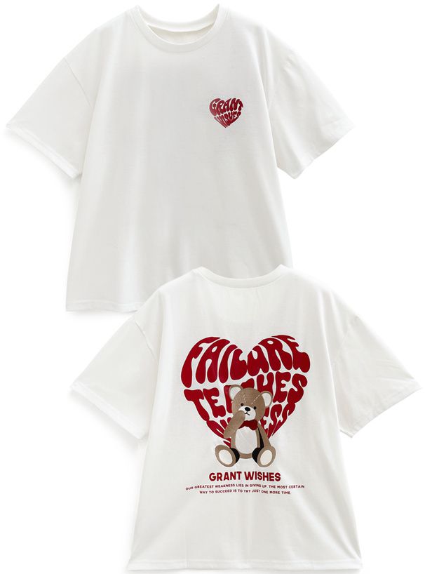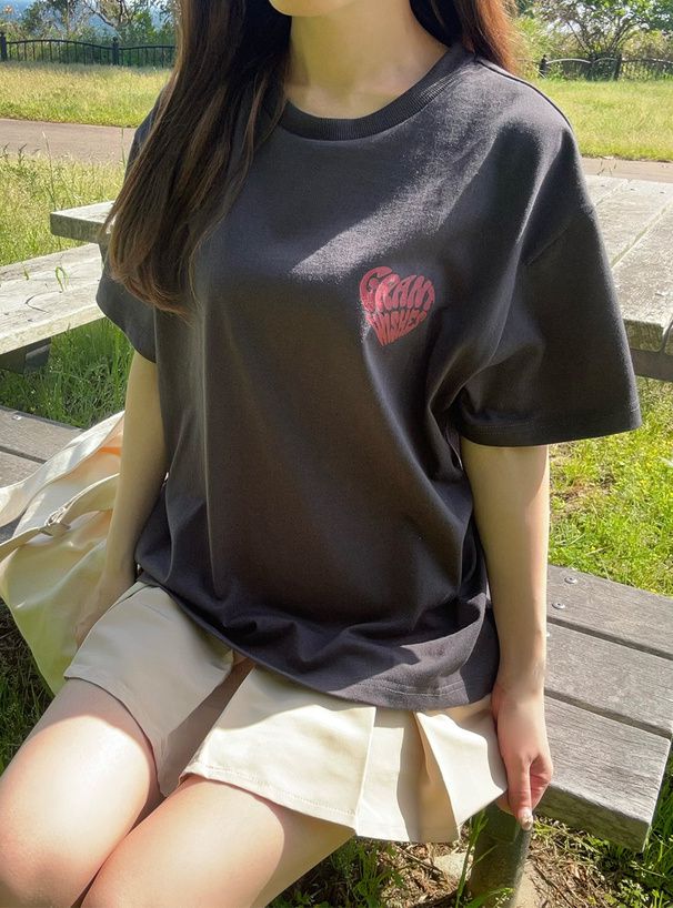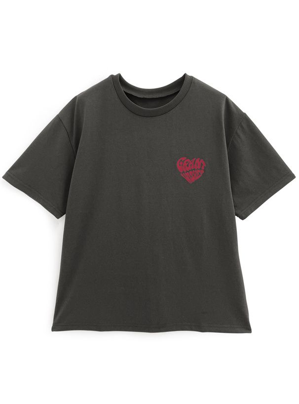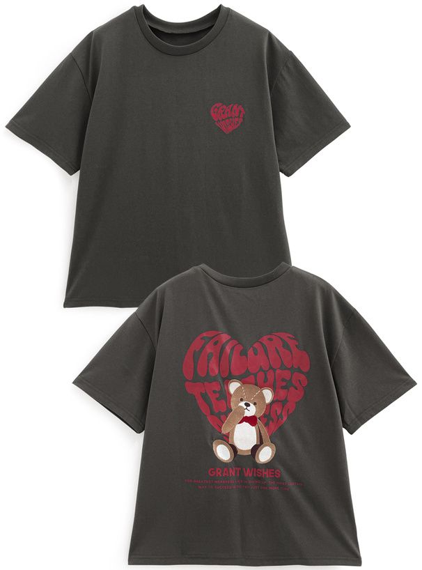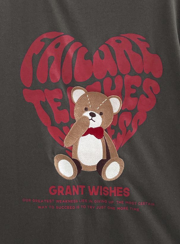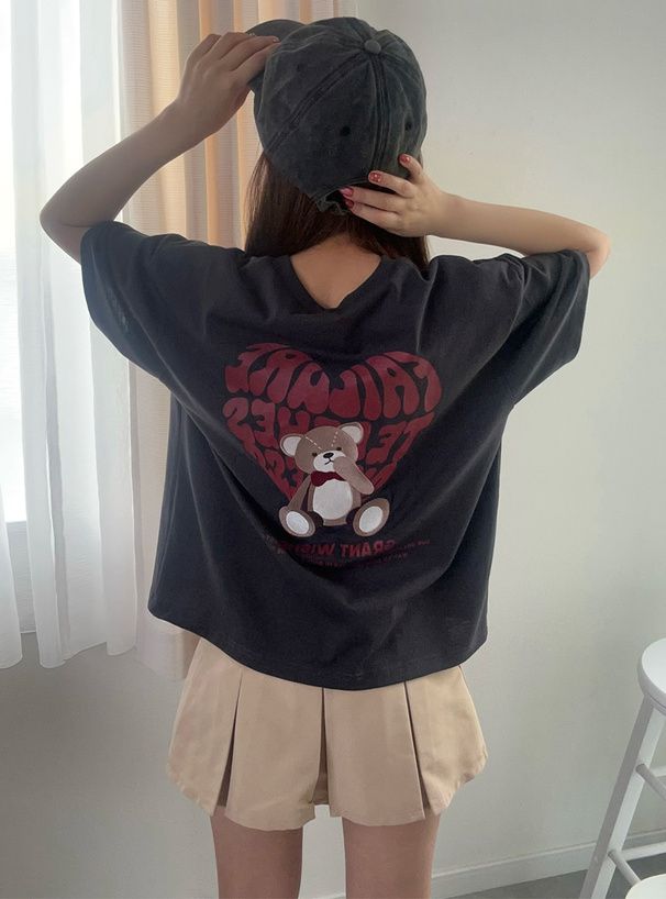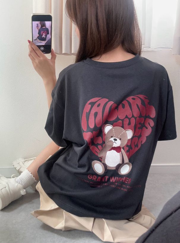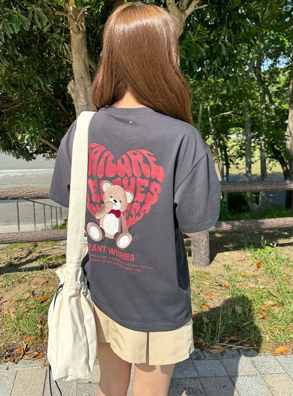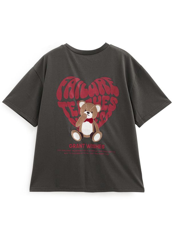 日本 GRL - 甜心熊熊印花短袖上衣-炭灰 (F)