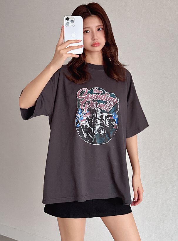 復古搖滾印花寬版短袖T恤