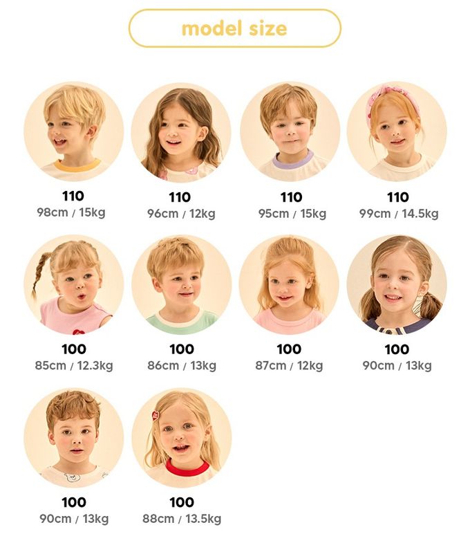 1. 尺寸表單位皆為公分(cm),實際尺寸會因布料彈性、水洗、測量起迄點等因素略有誤差。建議參考孩子平時穿著衣物尺寸進行選購。
