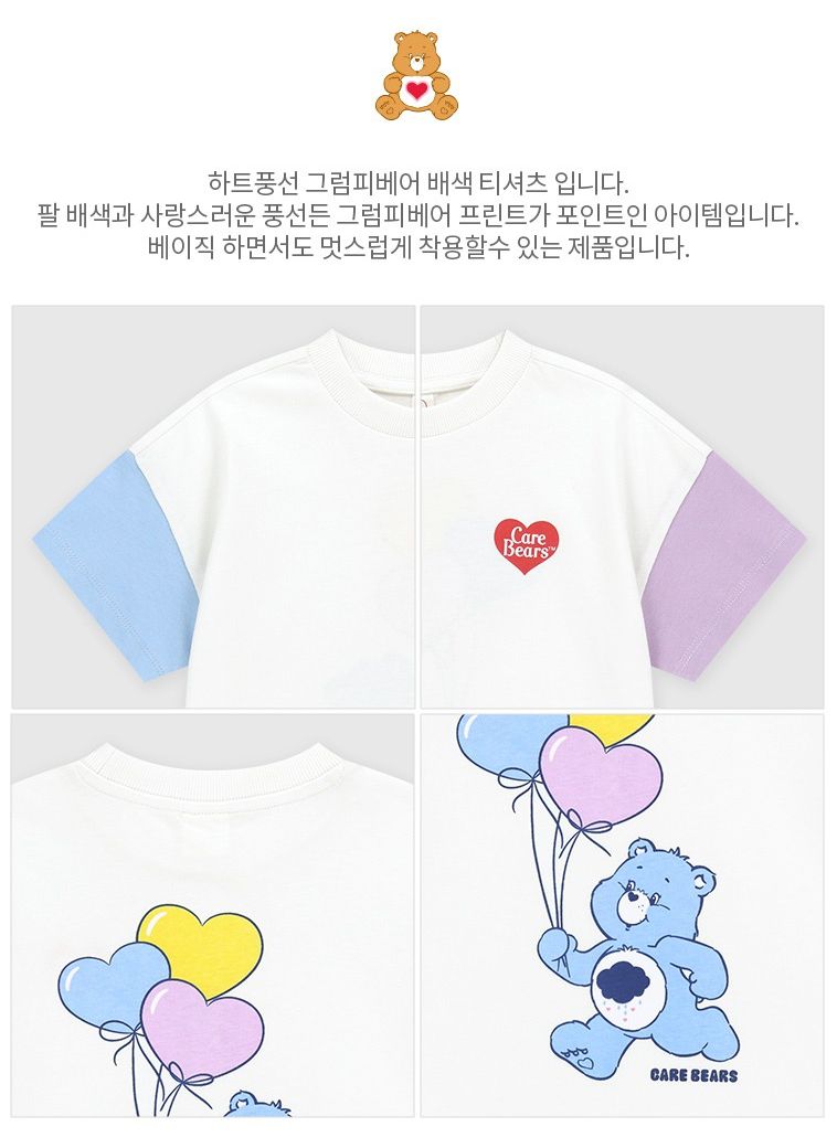 韓國 Care Bears - 聯名款愛心氣球熊熊短袖上衣-藍X紫