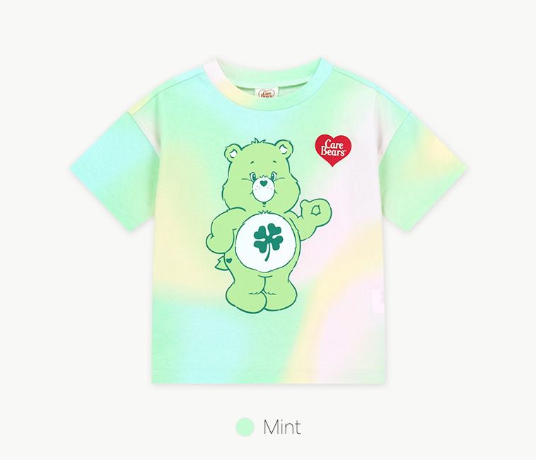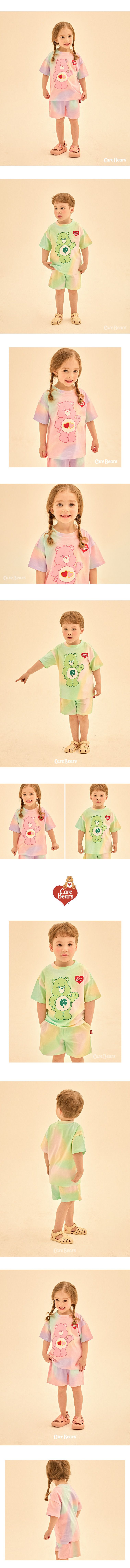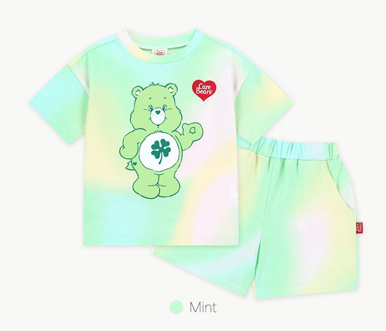 韓國 Care Bears - 聯名款大熊熊印暈染短袖套裝-幸運草綠熊-黃X綠