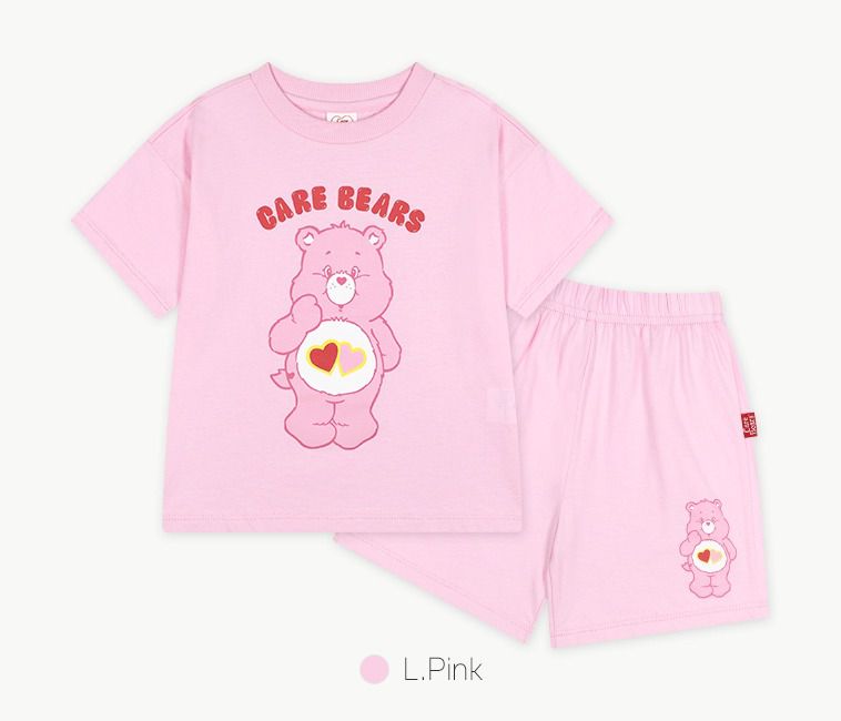 韓國 Care Bears - 聯名款思考熊熊印短袖套裝-心心粉熊-粉