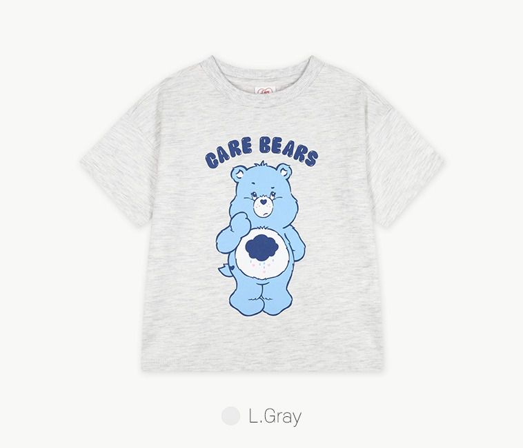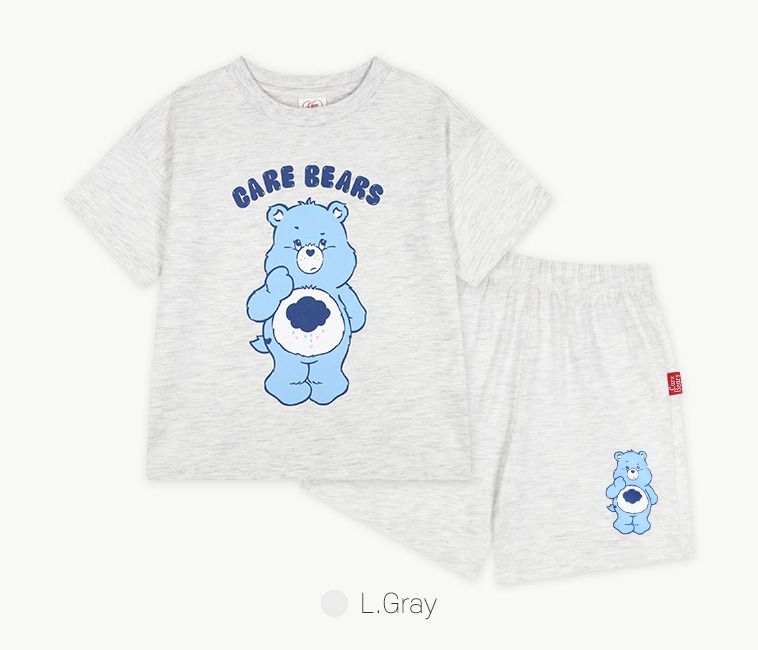 韓國 Care Bears - 聯名款思考熊熊印短袖套裝-憂鬱藍熊-淺灰