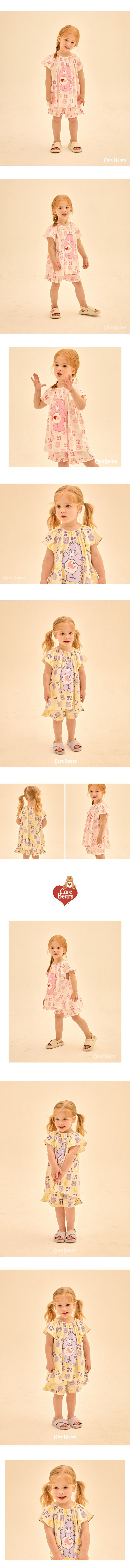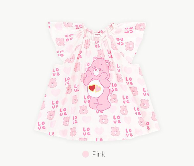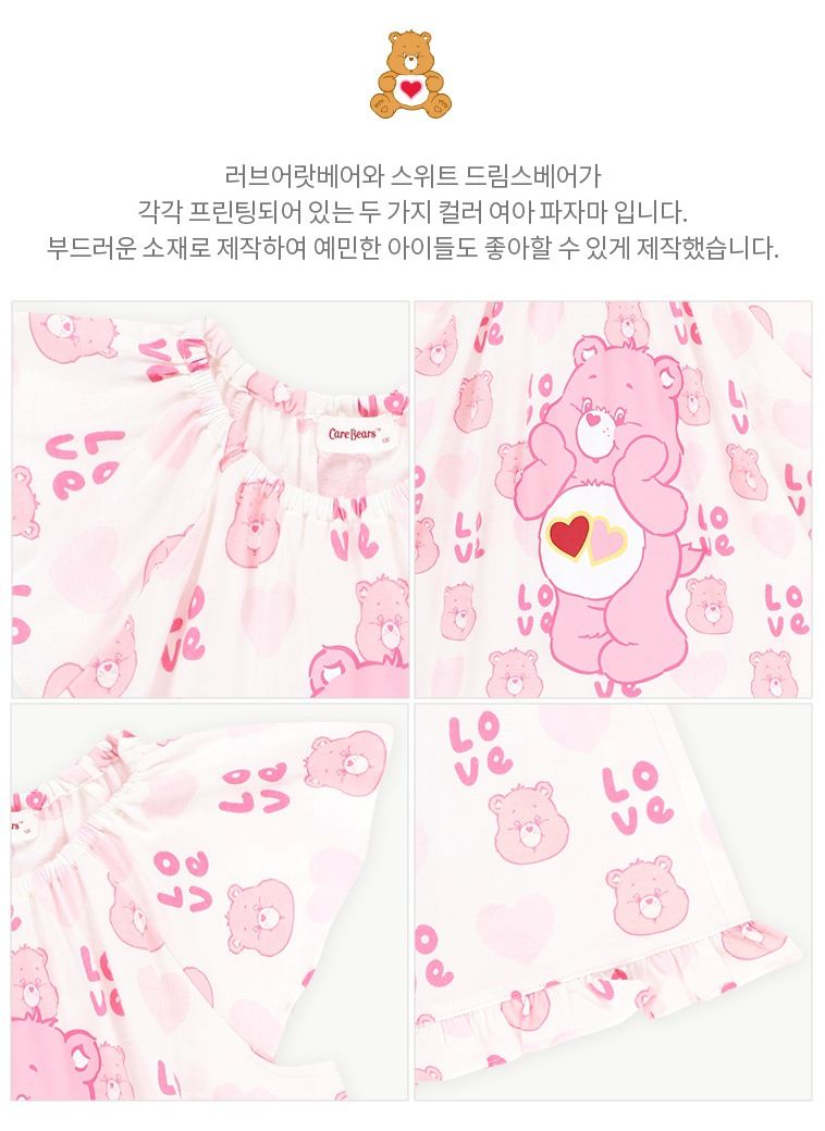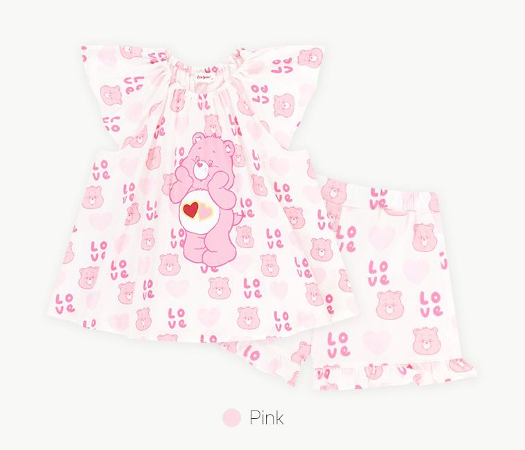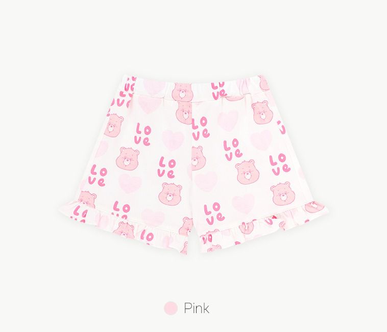 韓國 Care Bears - 聯名款LOVE熊荷葉袖上衣X短褲套裝-心心粉熊-淡粉