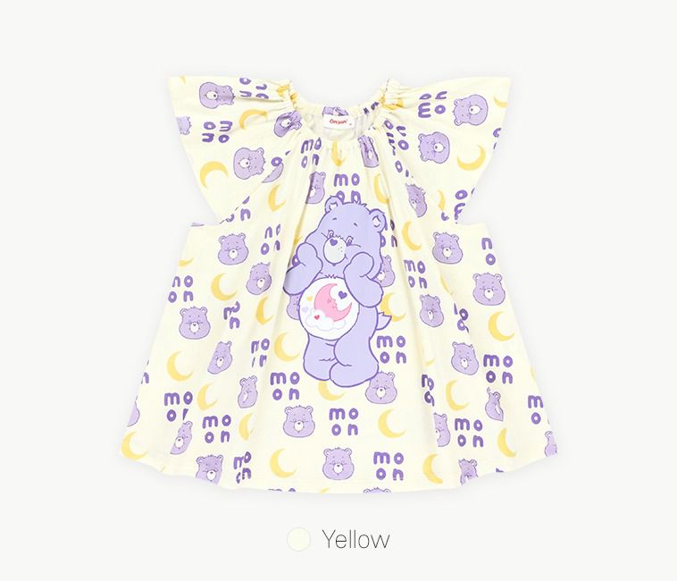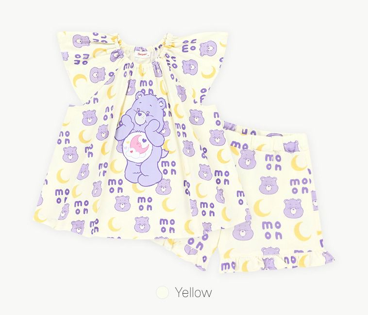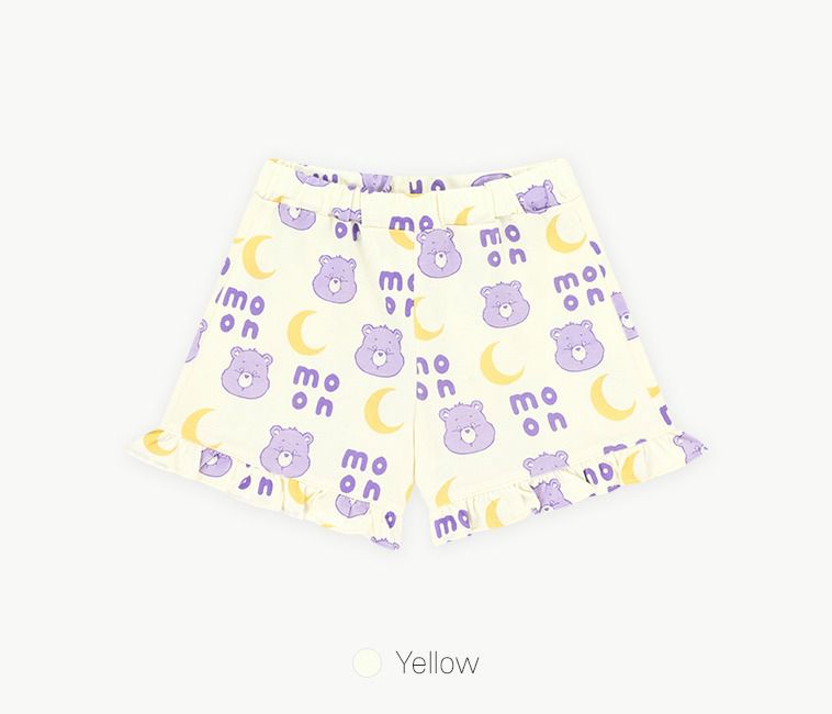 韓國 Care Bears - 聯名款MOON熊荷葉袖上衣X短褲套裝-月亮紫熊-淡黃