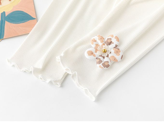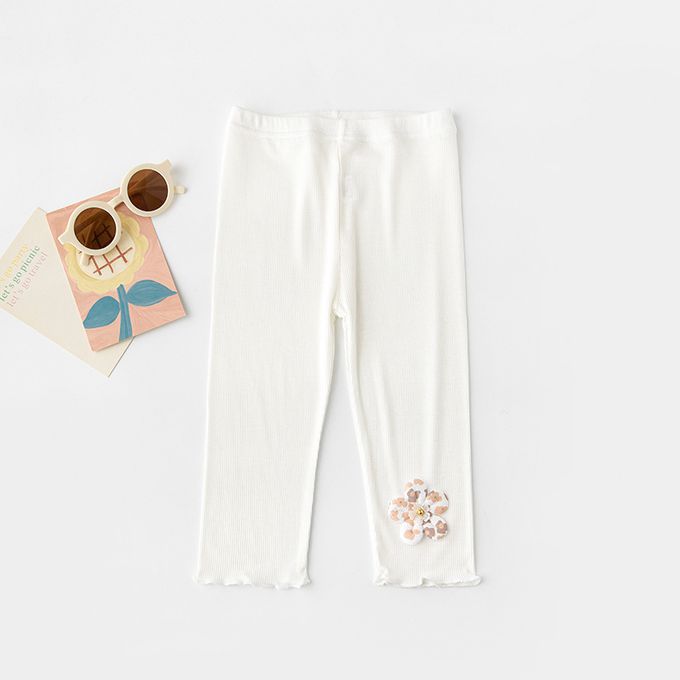 涼感七分內搭褲-漂亮花朵-白色