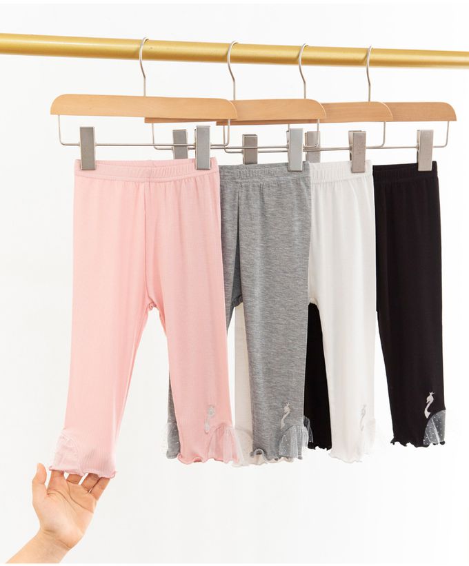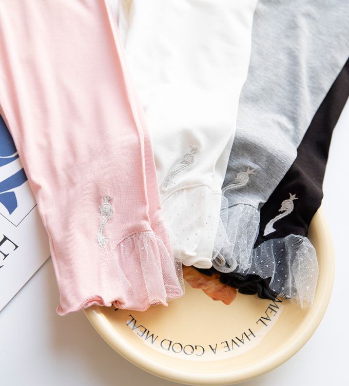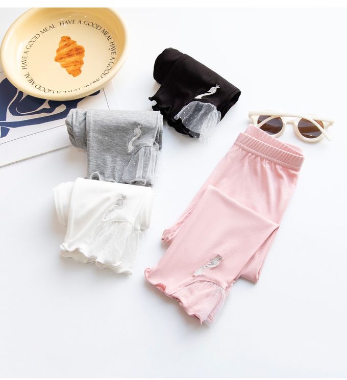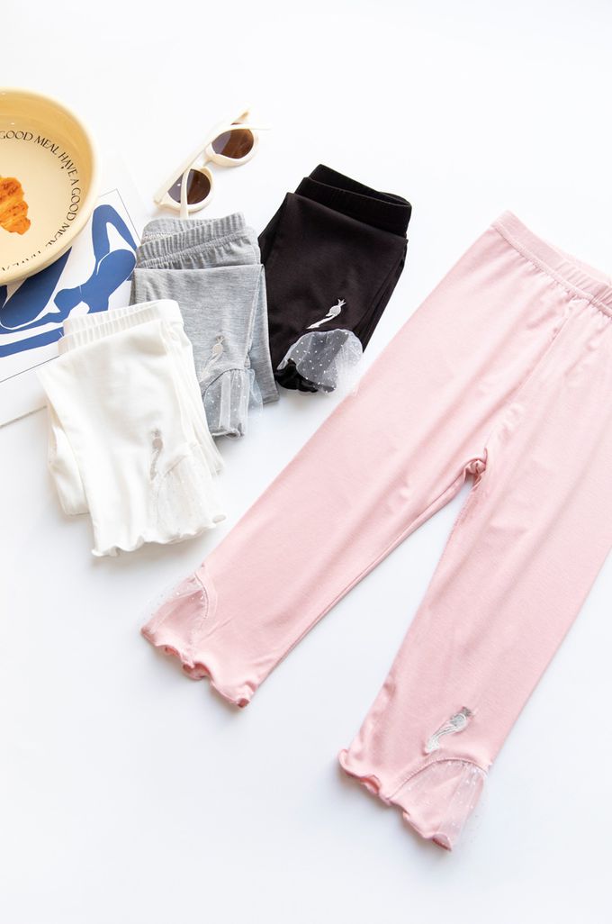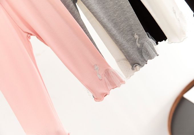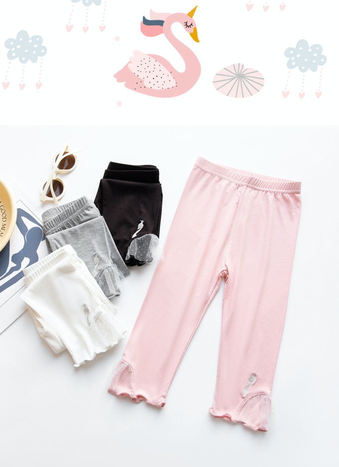 褲腳白蕾絲拼接x可愛天鵝裝飾,造型別緻