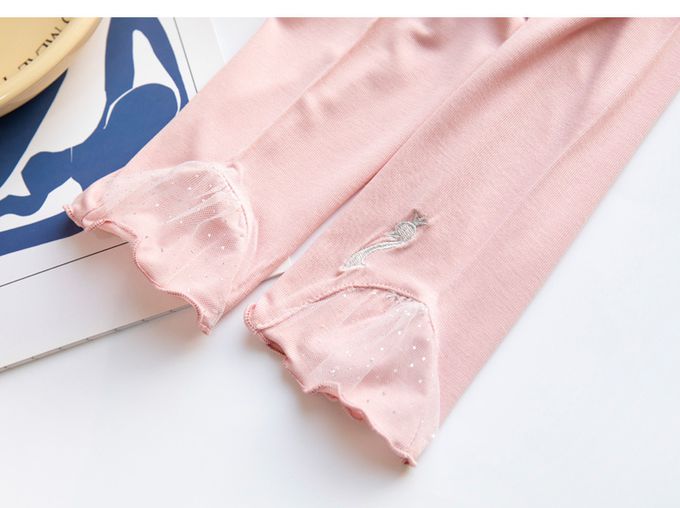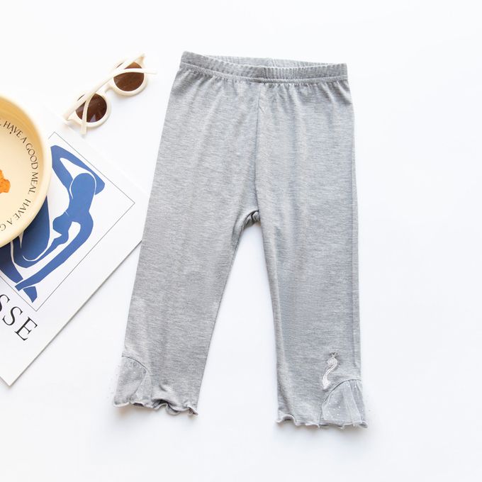 FANMOU - 涼感七分內搭褲-蕾絲天鵝-灰色