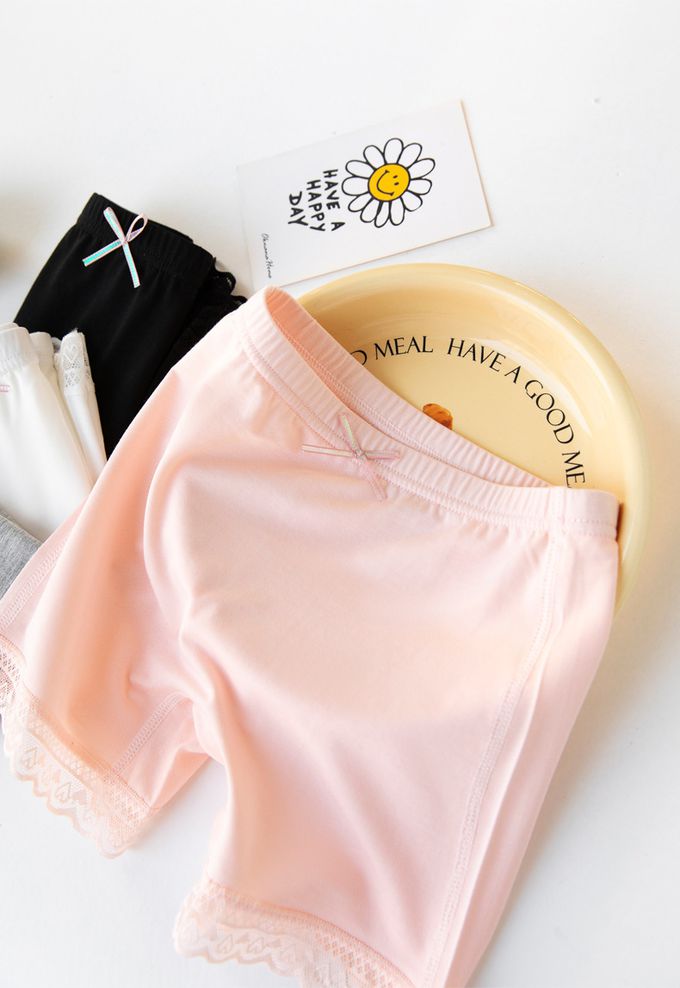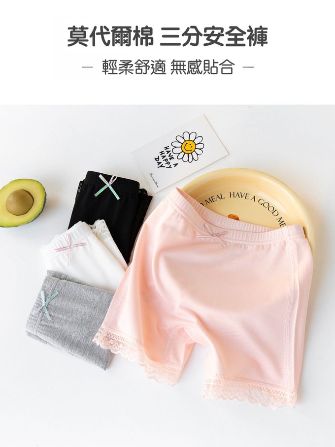 莫代爾三分內搭褲/安全褲-蕾絲邊-粉色