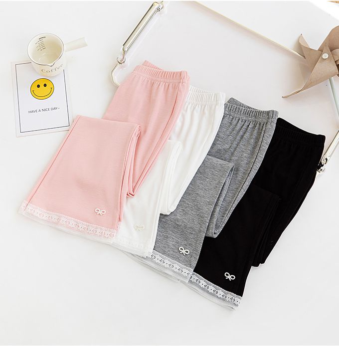 褲腳蕾絲拼接x蝴蝶結裝飾,造型別緻