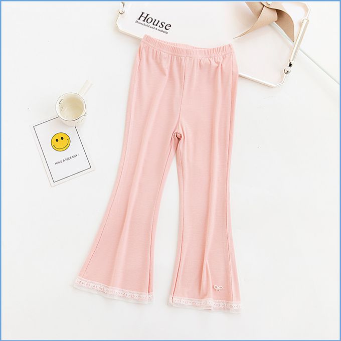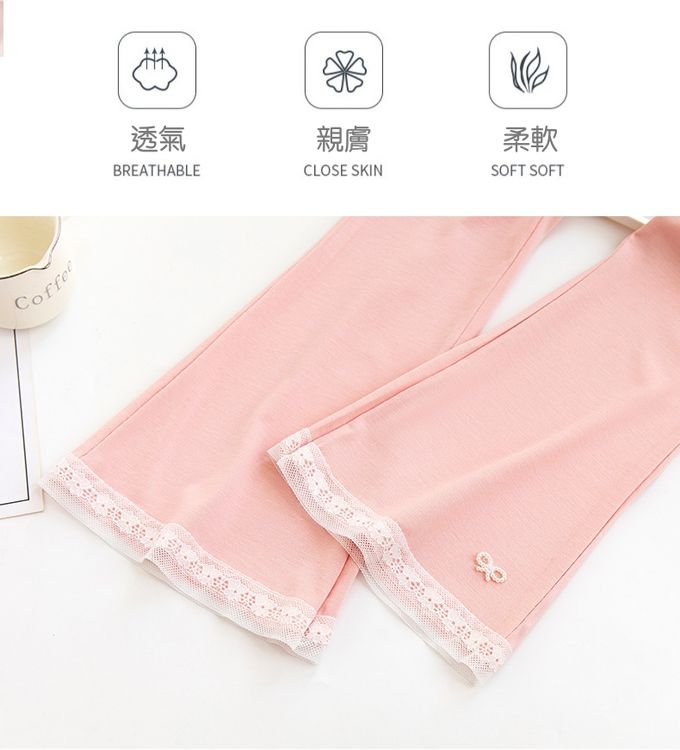涼感透氣微喇叭褲-蝴蝶結蕾絲-黑色