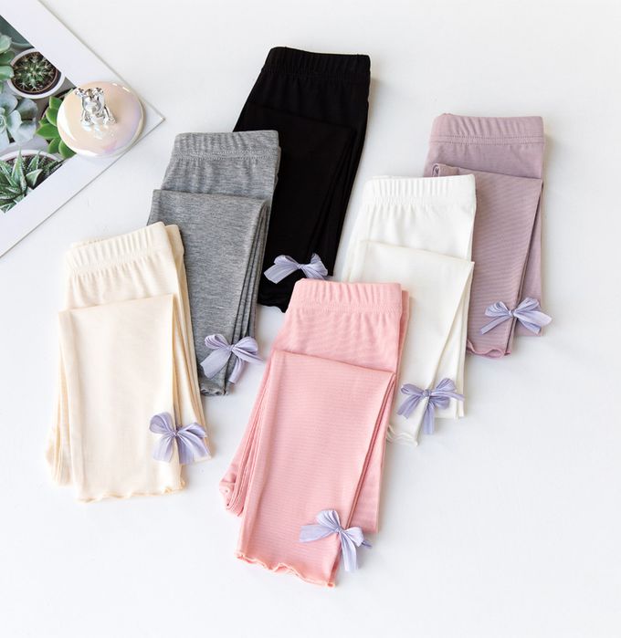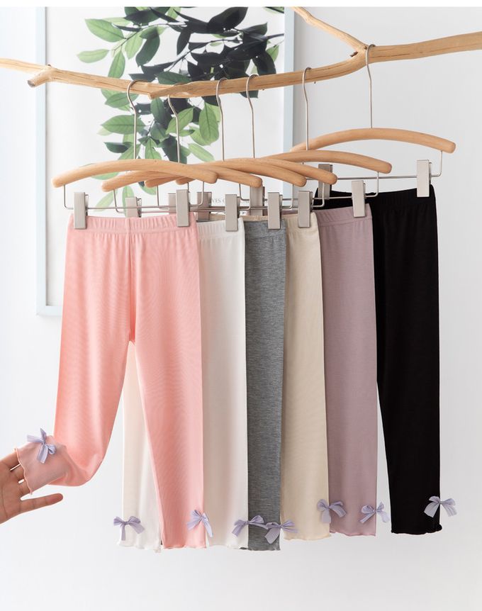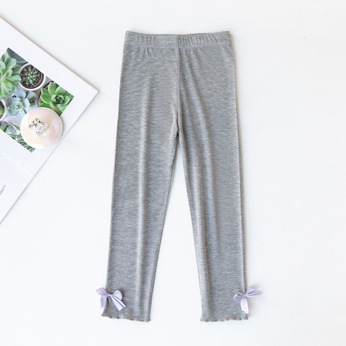 莫代爾透氣九分內搭褲-立體蝴蝶結-灰色