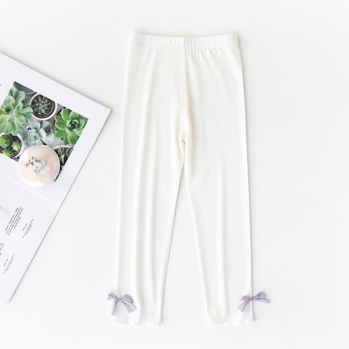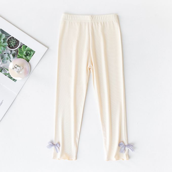 FANMOU - 莫代爾透氣九分內搭褲-立體蝴蝶結-米杏色