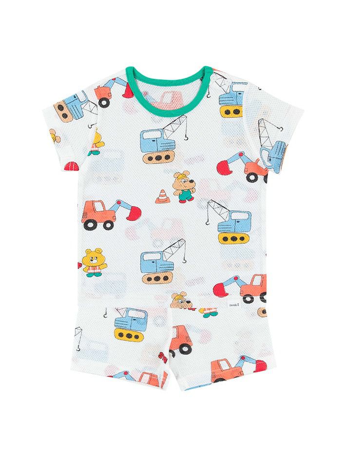 韓國 Cordi-i - 透氣網眼洞洞短袖家居服/睡衣-動物工程車-白