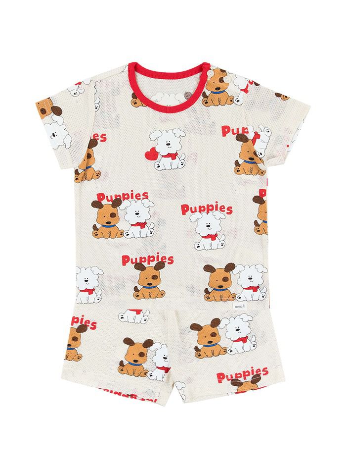 韓國 Cordi-i - 透氣網眼洞洞短袖家居服/睡衣-狗狗好朋友-米黃