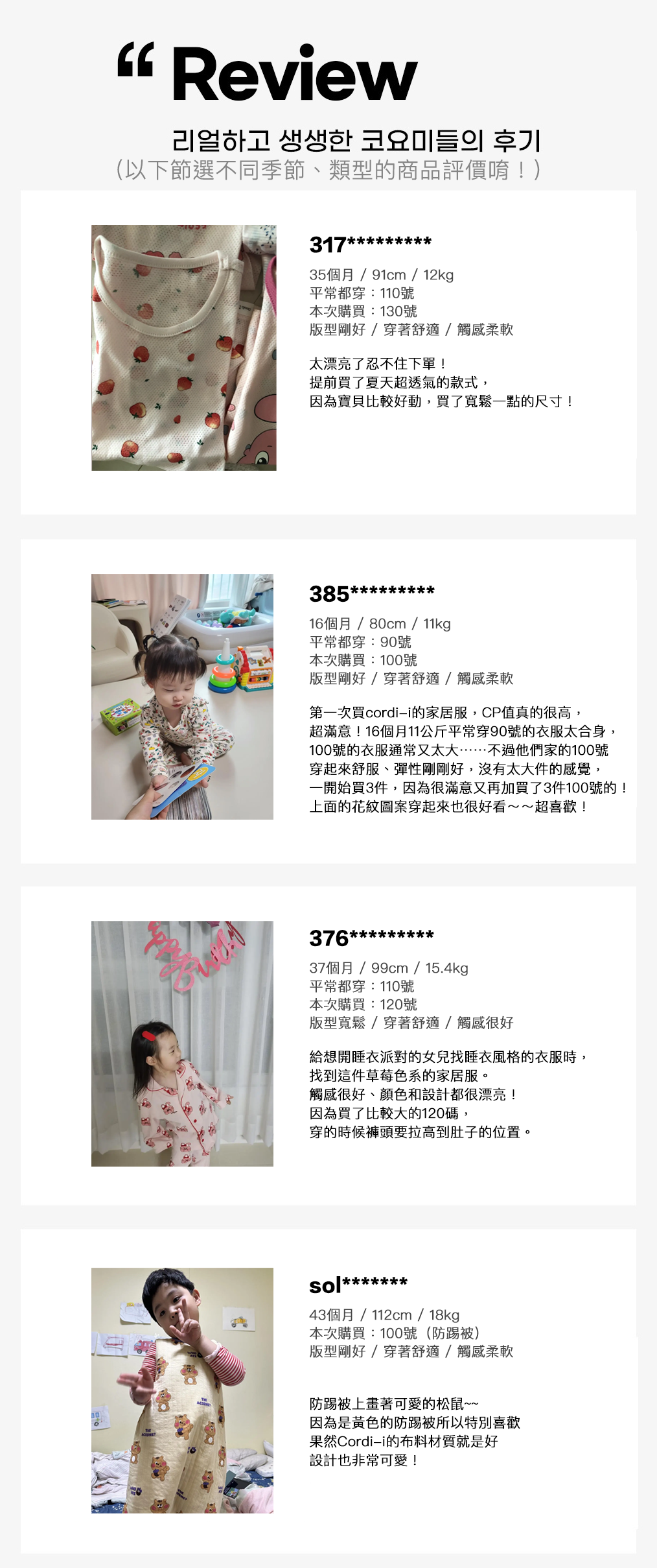 每次 Cordi-i 出新款式,就有許多韓國媽咪立刻幫家中寶貝們換季~而且韓國媽咪們不但對他們家的衣服品質給予肯定,也對 Cordi-i 各種可愛的圖樣心花怒放、選擇困難~
