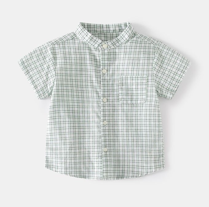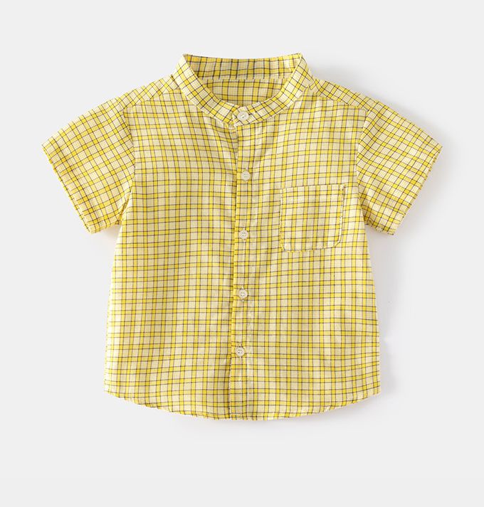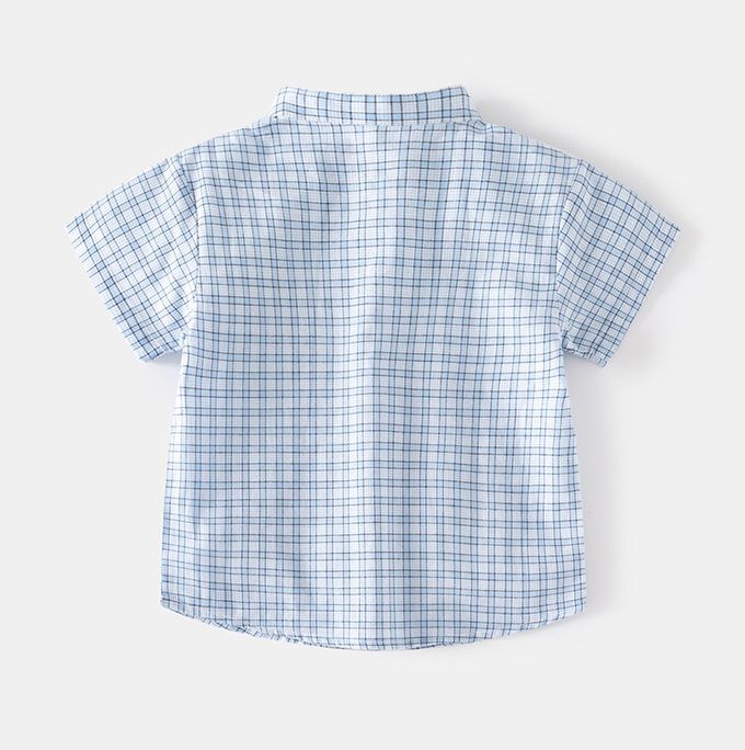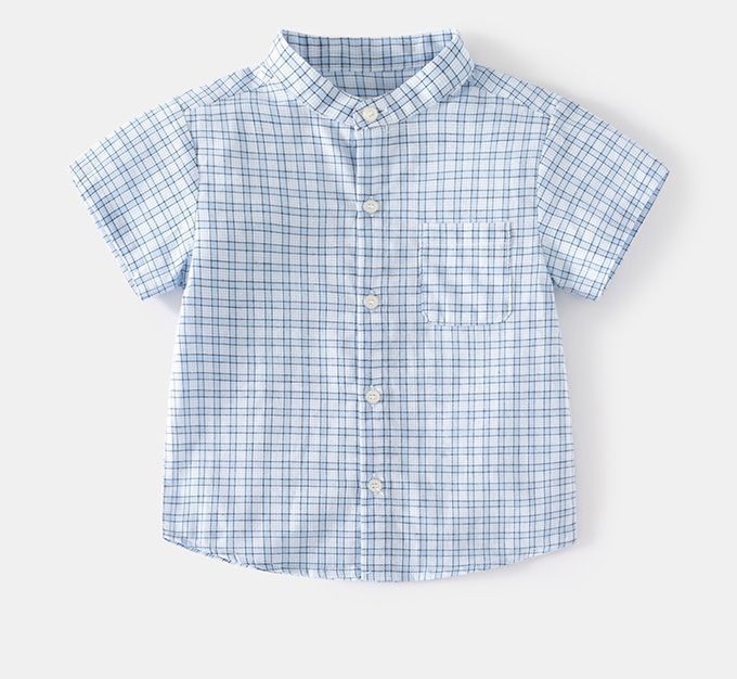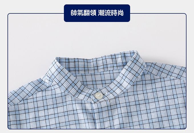 WELLKIDS - 純棉休閒立領短袖襯衫-牛仔-淺藍