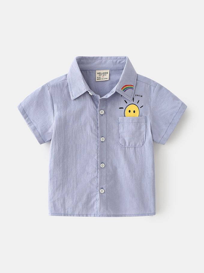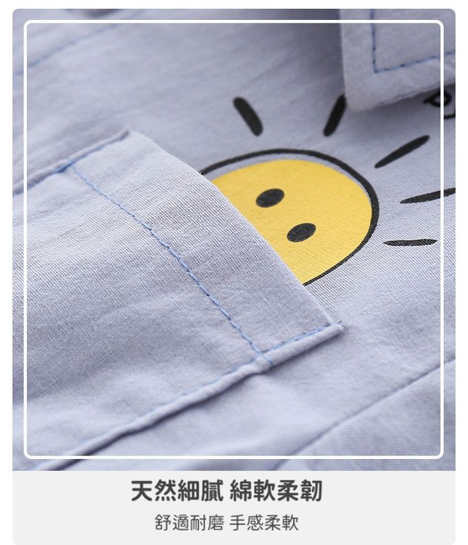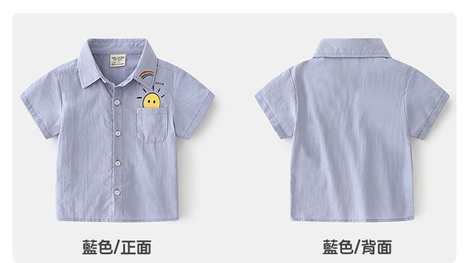 純棉休閒翻領短袖襯衫-太陽彩虹-藍色