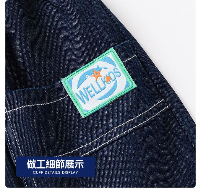 WELLKIDS - 腰鬆緊休閒牛仔五分褲-動物園-深藍色