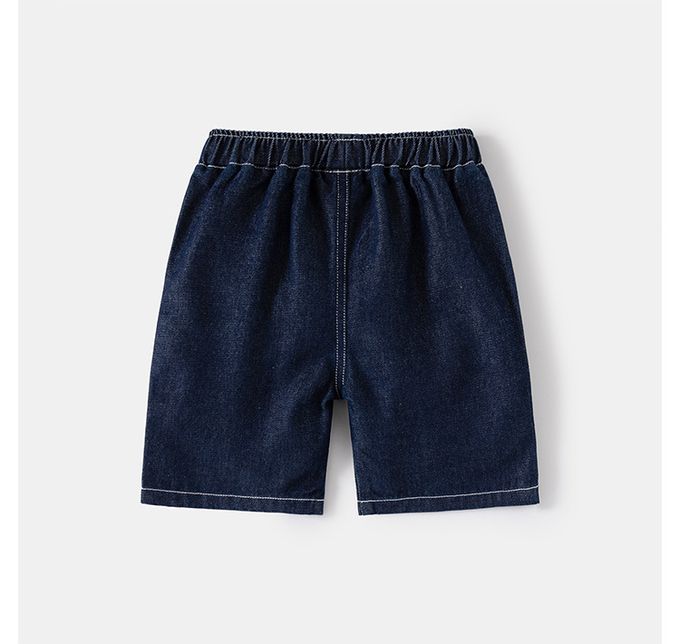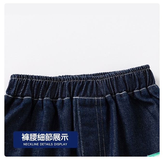 WELLKIDS - 腰鬆緊休閒牛仔五分褲-恐龍-深藍色
