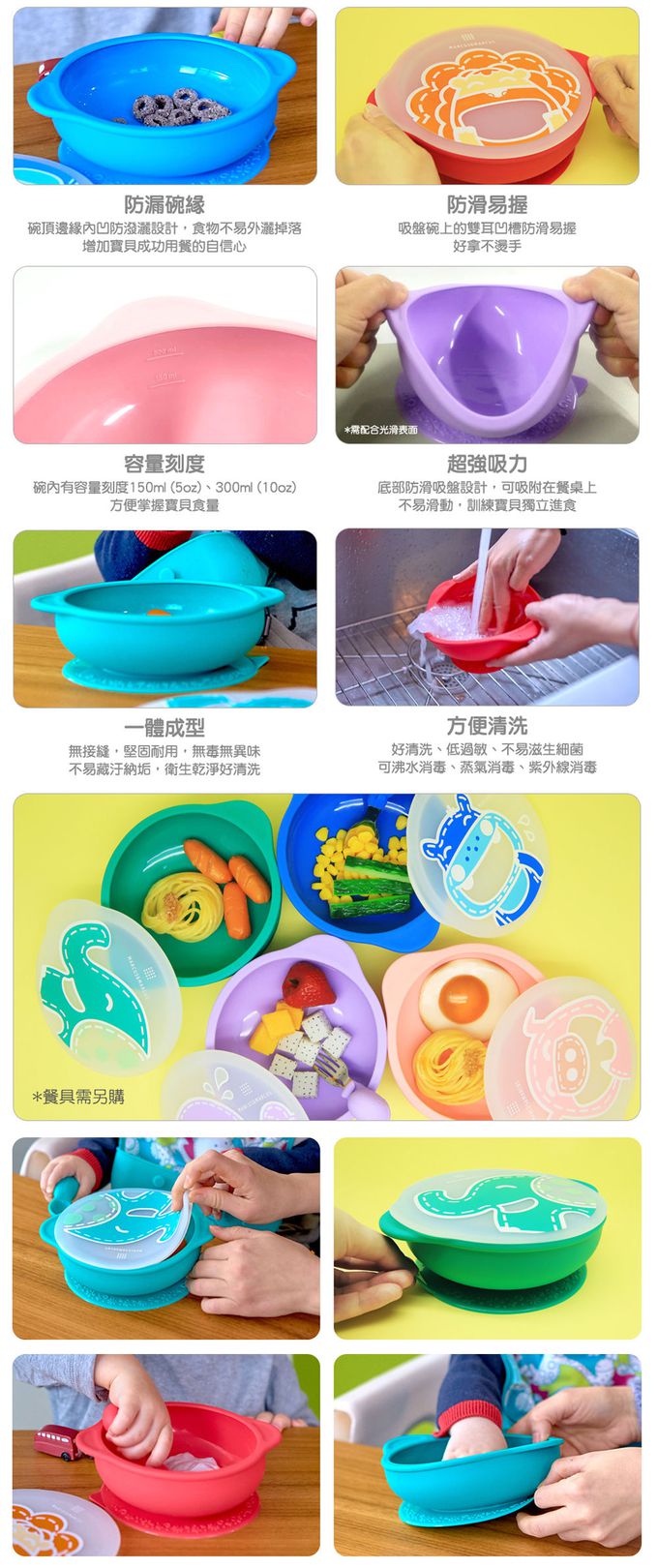 🔹底部防滑吸盤設計,不易滑動,訓練寶貝獨立進食。