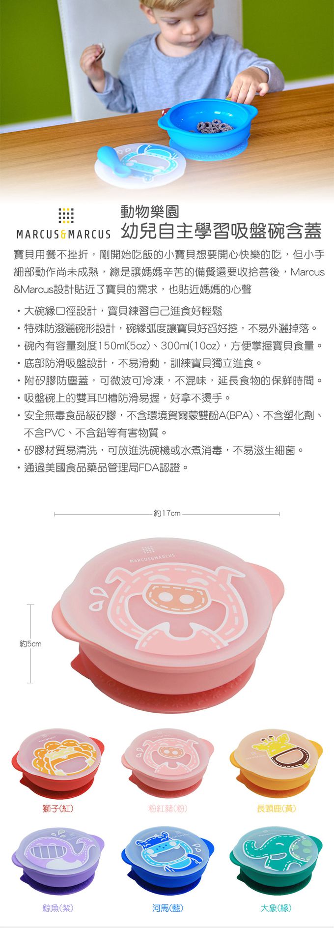 寶貝用餐不挫折,剛開始吃飯的小寶貝想要開心快樂的吃,但小手細部動作尚未成熟,總是讓媽媽辛苦的備餐還要收拾善後,Marcus &Marcus設計貼近了寶貝的需求,也貼近媽媽的心聲