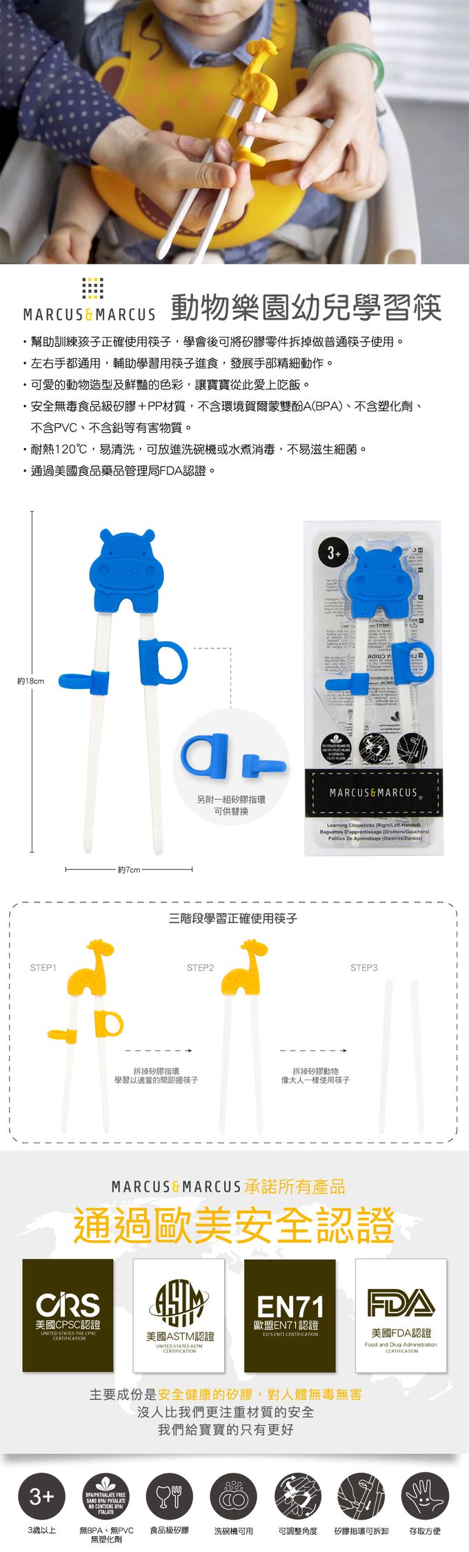 • 左右手都通用,輔助學習用筷子進食
