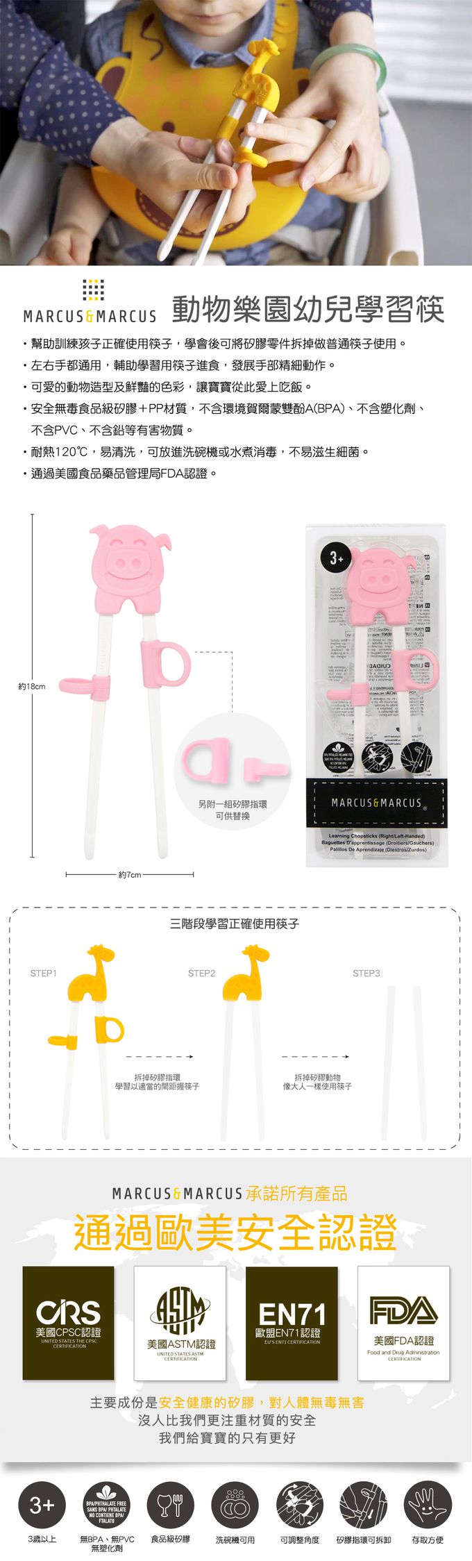 MARCUS&MARCUS - 動物樂園幼兒學習筷-粉紅豬(粉)