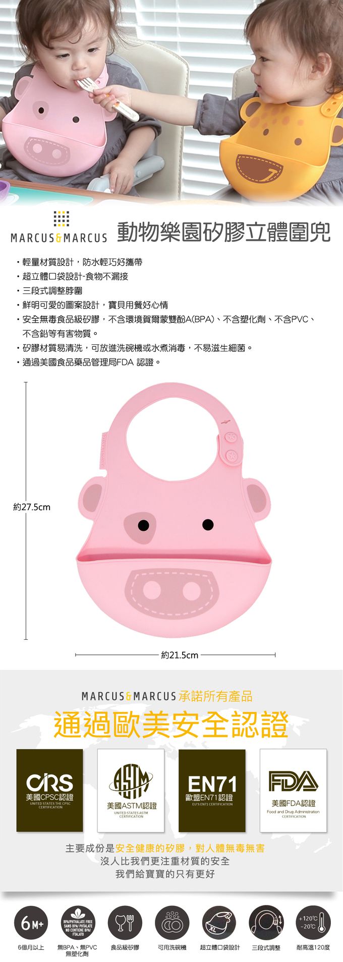 MARCUS&MARCUS - 動物樂園矽膠立體圍兜-粉紅豬