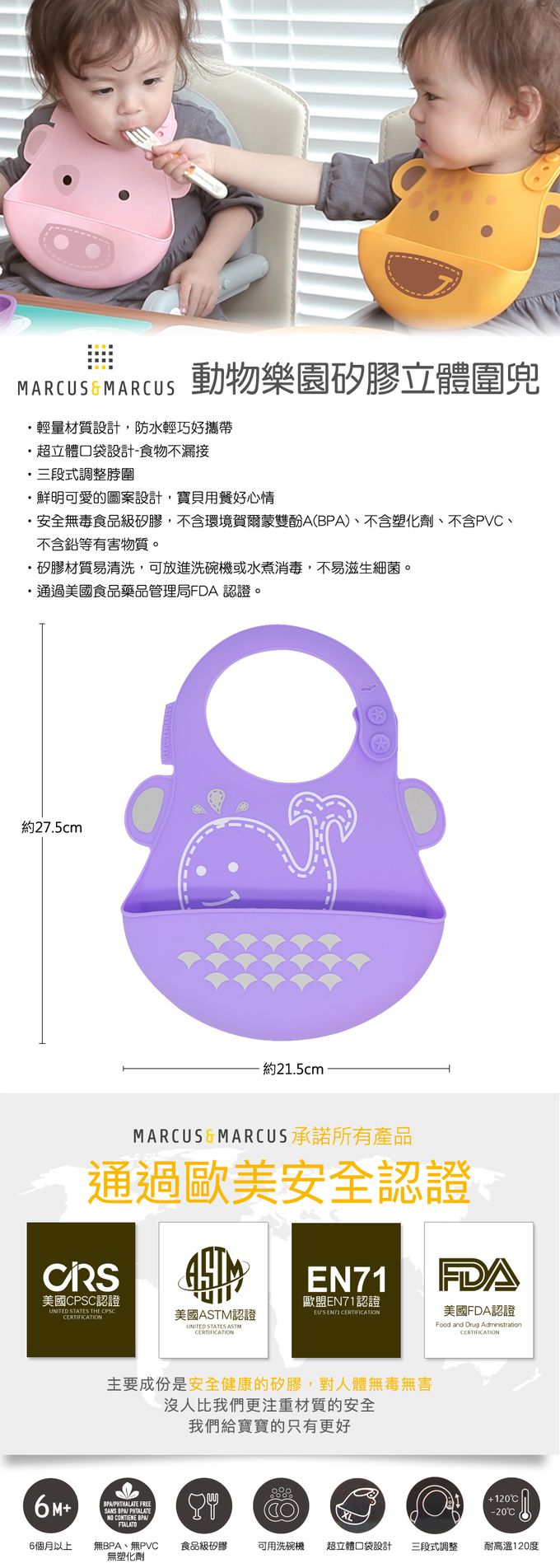 MARCUS&MARCUS - 動物樂園矽膠立體圍兜-鯨魚
