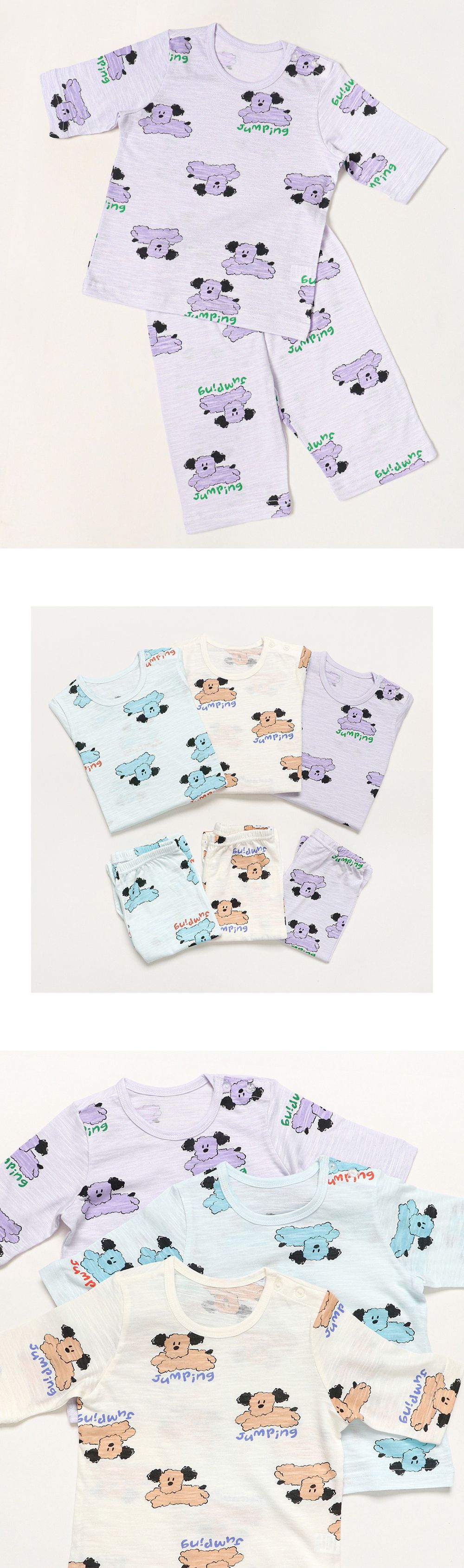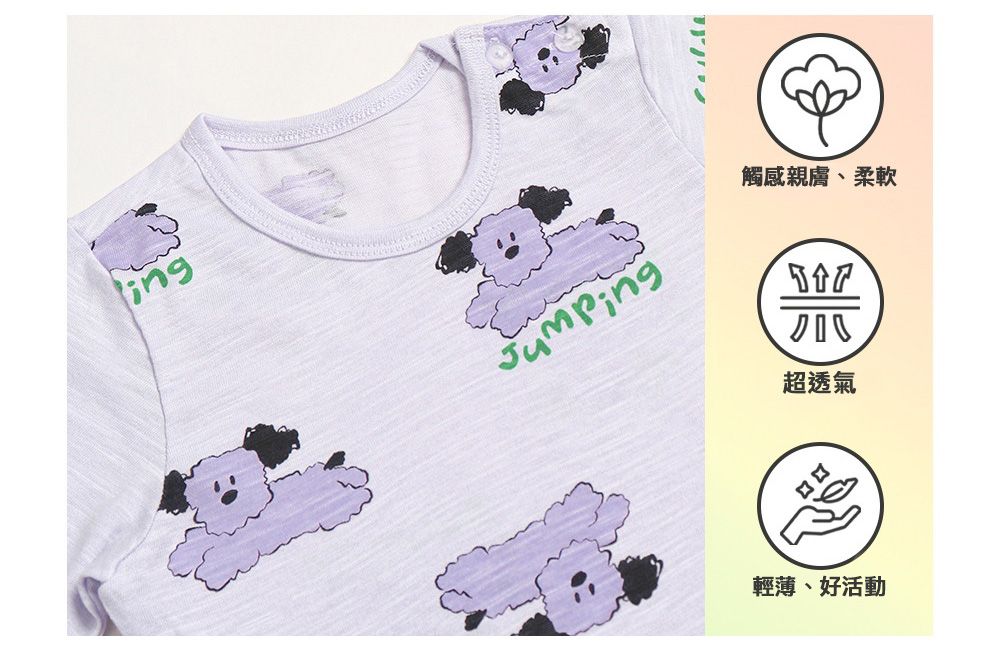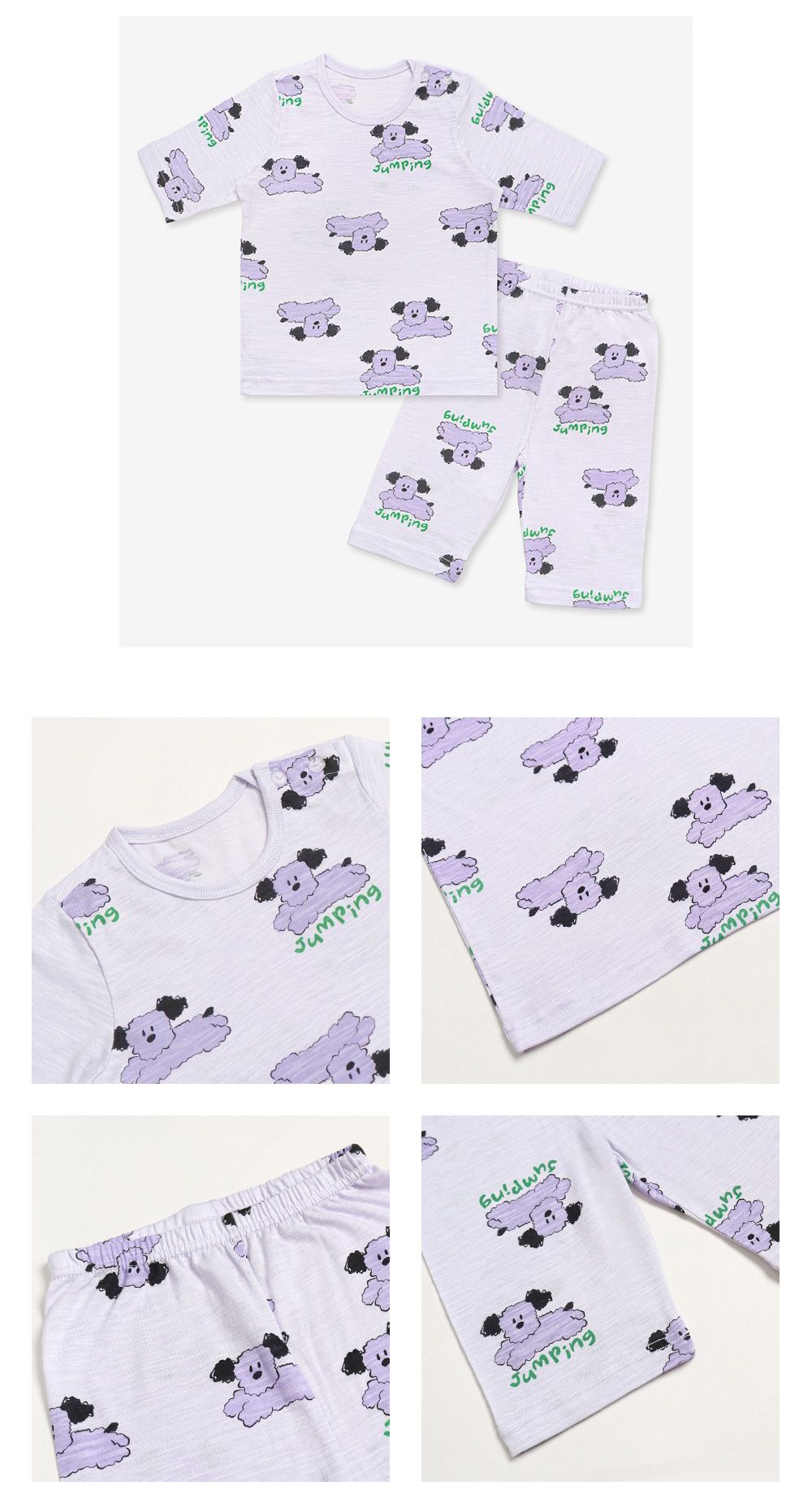 韓國 Mellisse - 韓製莫代爾透氣7分袖家居服-跳躍狗狗-淺紫