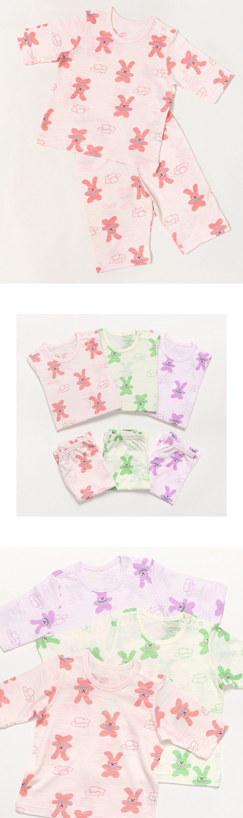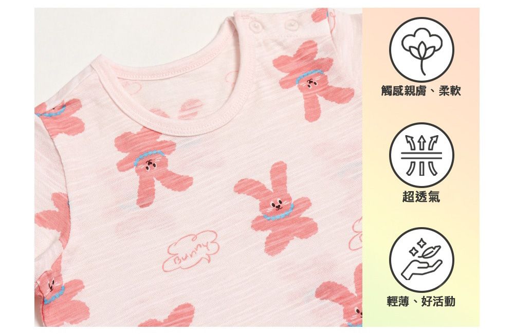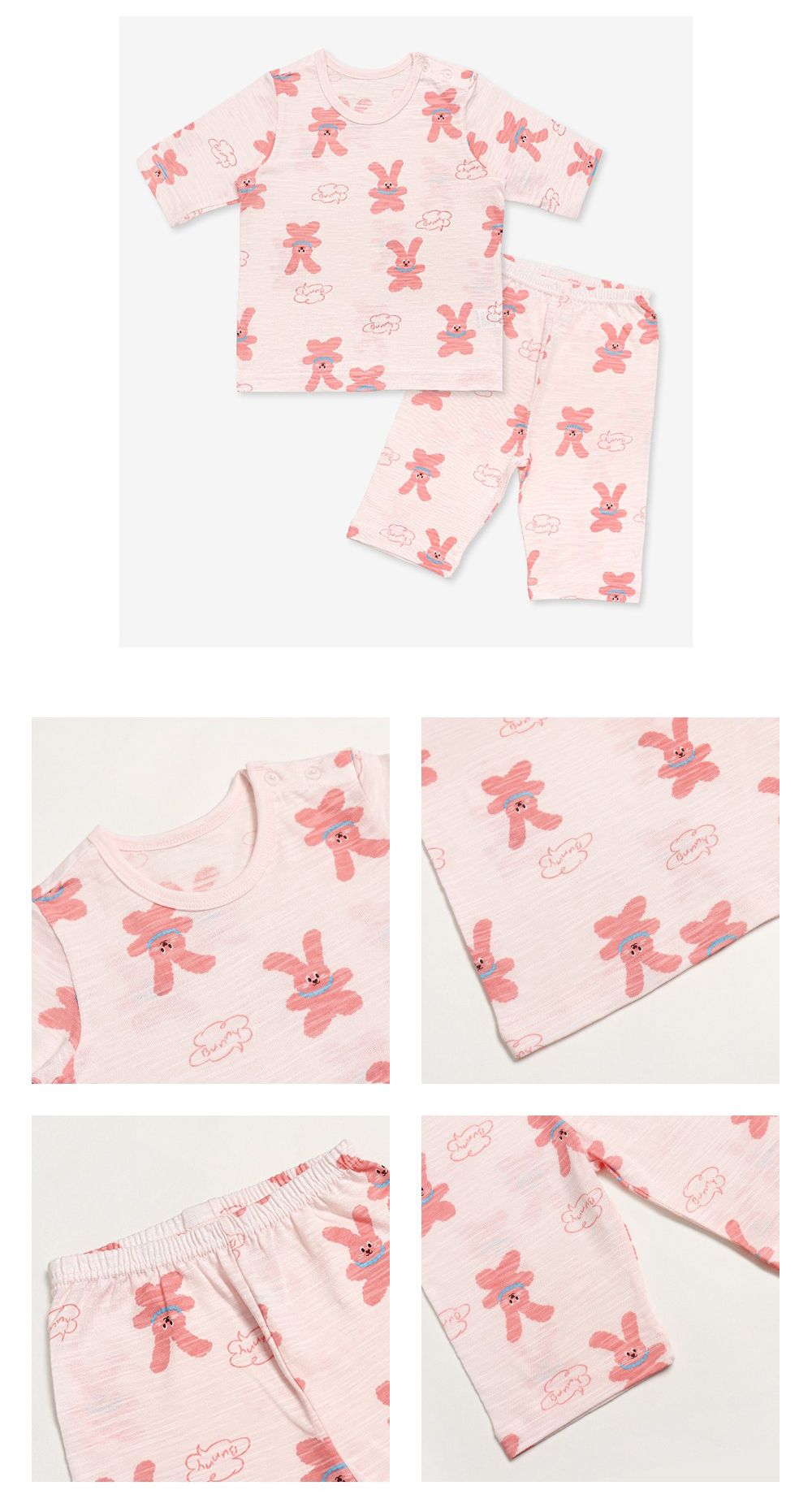 韓國 Mellisse - 韓製莫代爾透氣7分袖家居服-滿版粉橘兔兔-粉