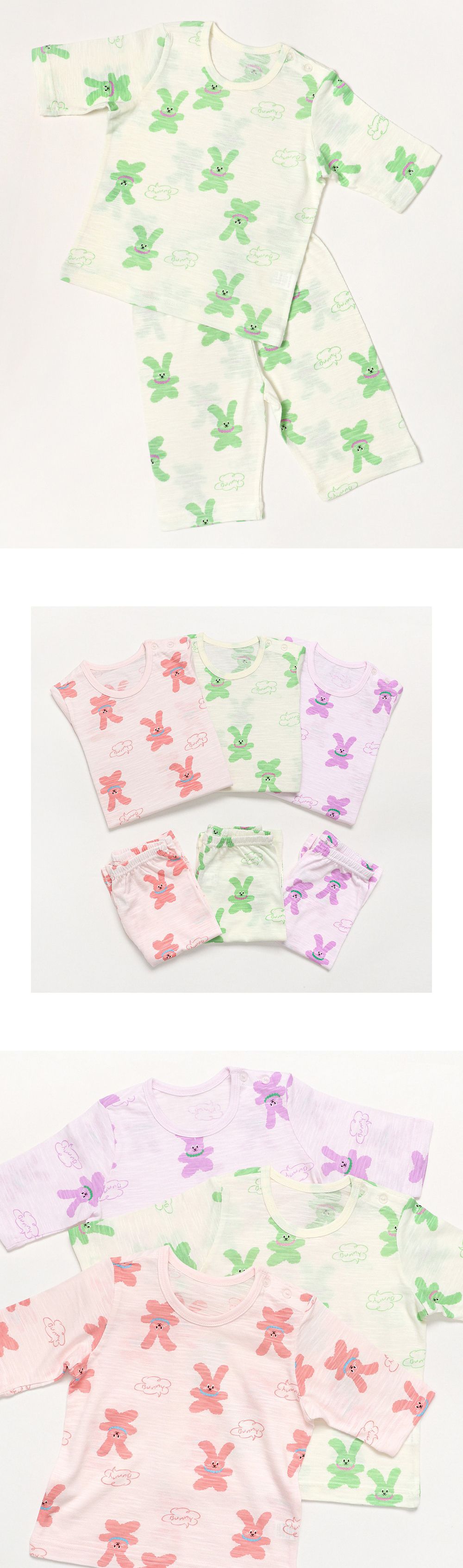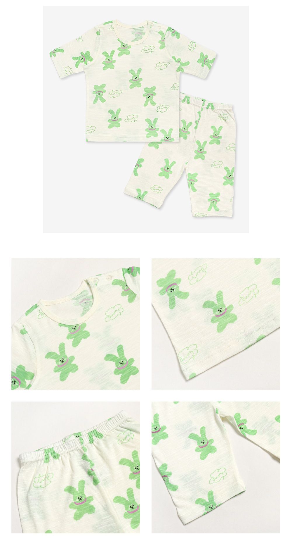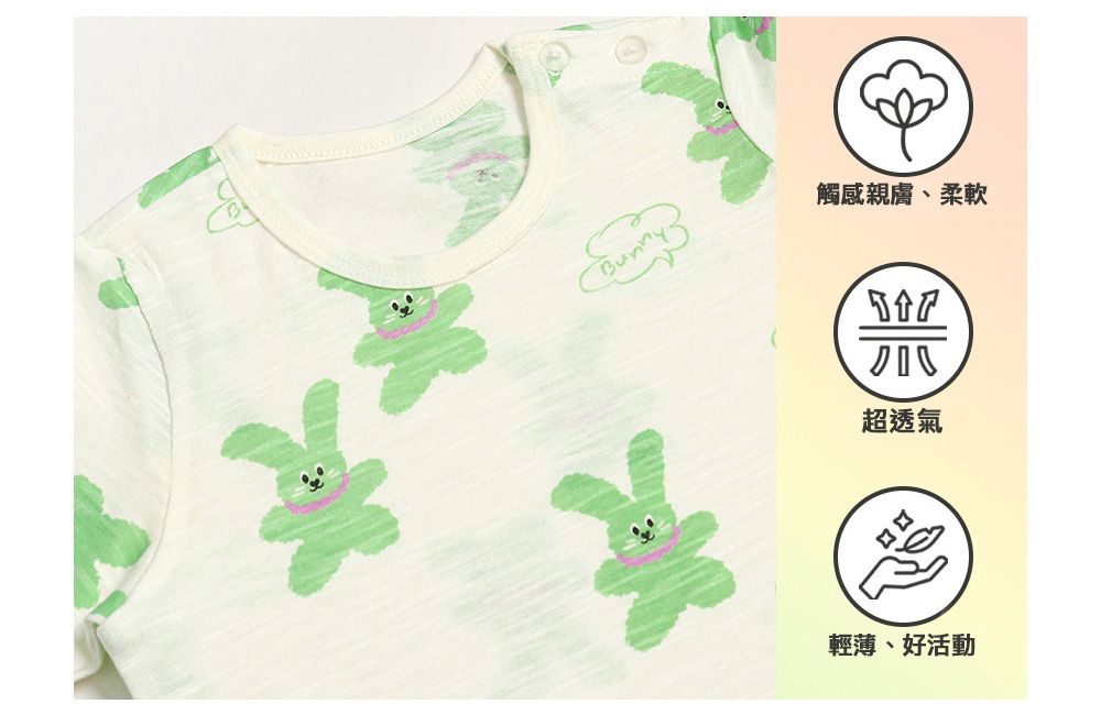 韓國 Mellisse - 韓製莫代爾透氣7分袖家居服-滿版綠兔兔-米黃