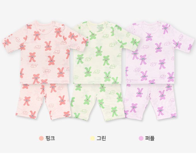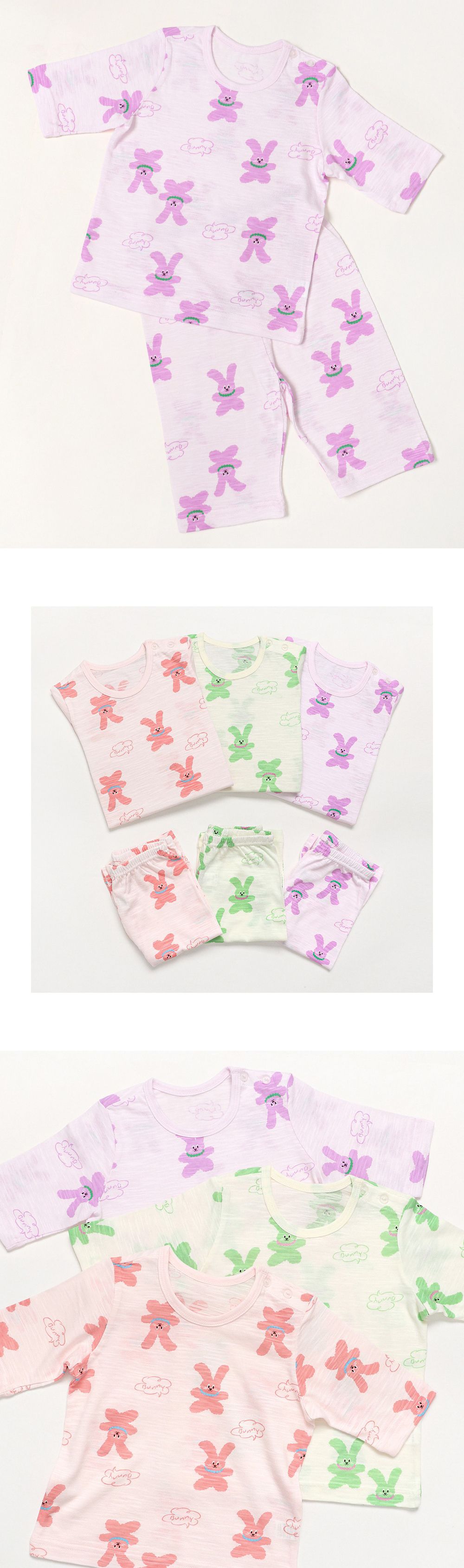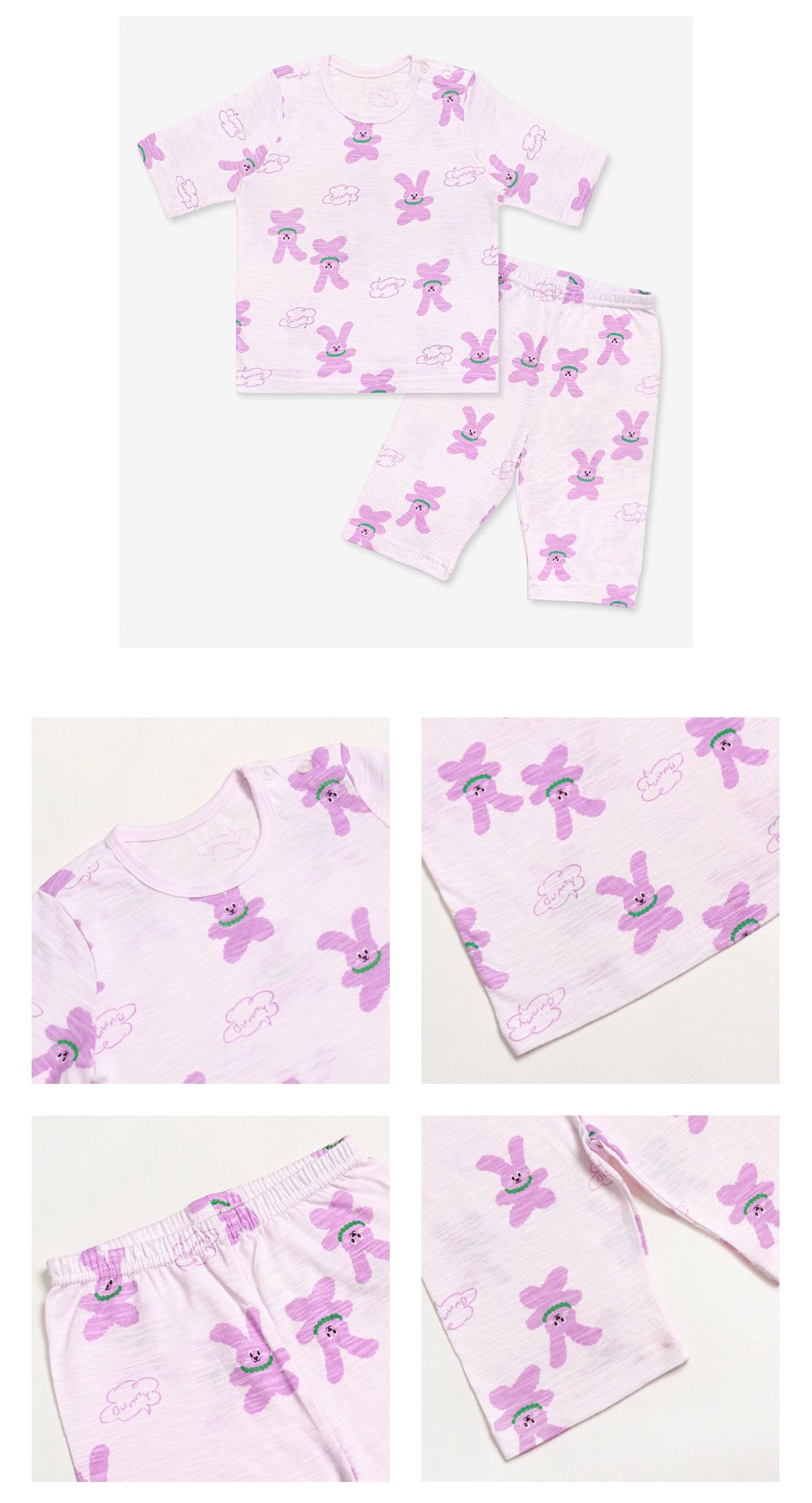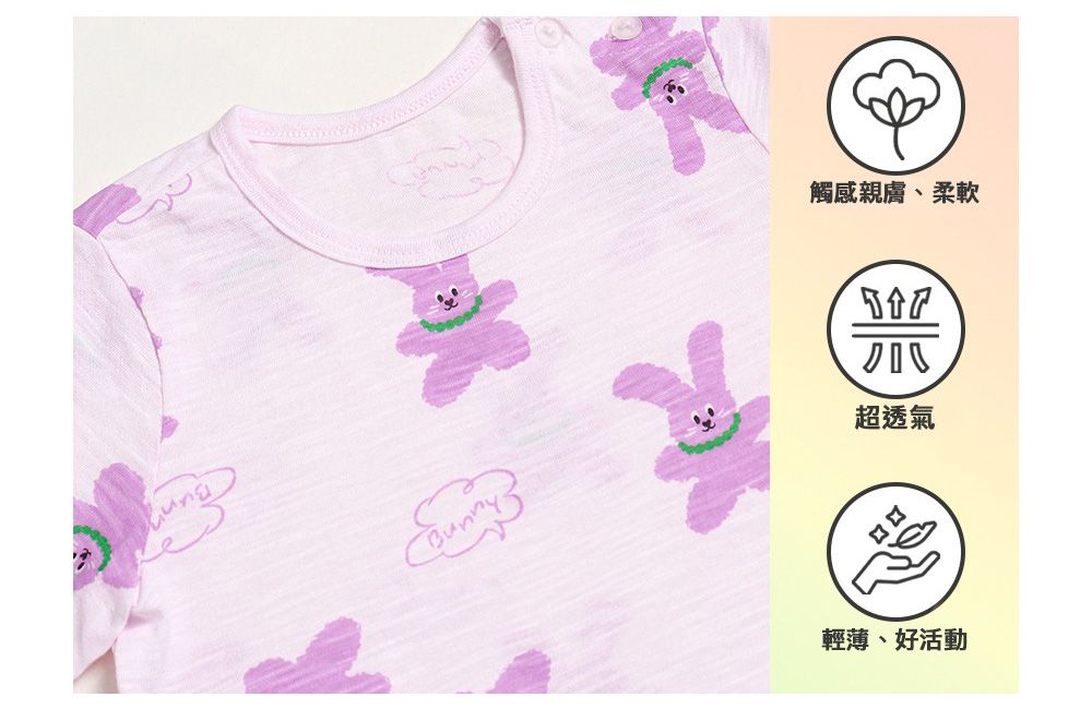韓國 Mellisse - 韓製莫代爾透氣7分袖家居服-滿版紫兔兔-淡紫