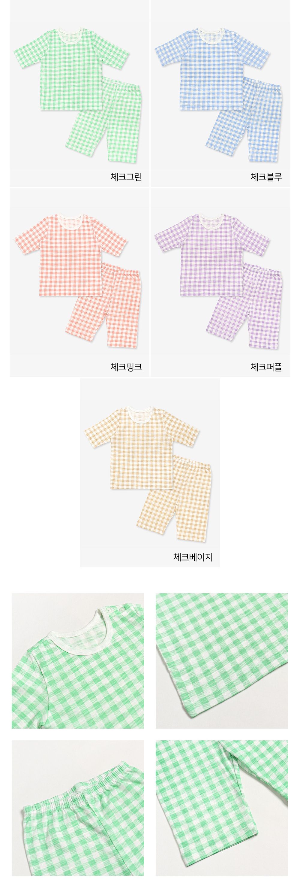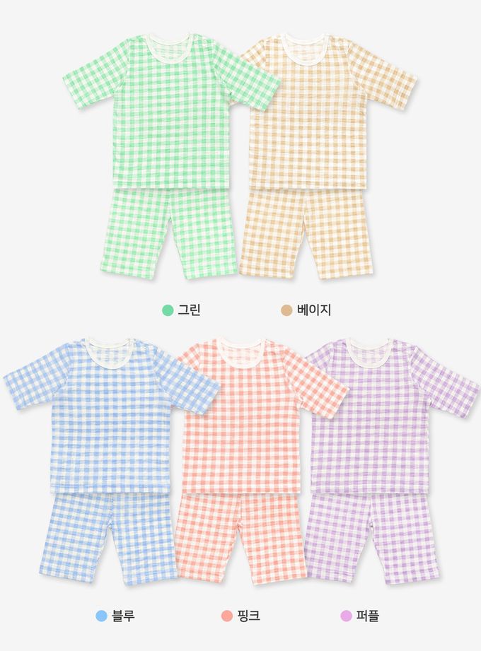 韓國 Mellisse - 韓製莫代爾透氣7分袖家居服-棋盤格-粉橘